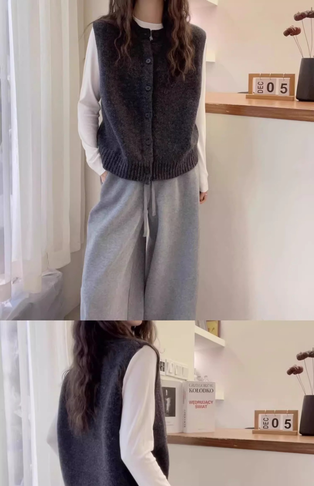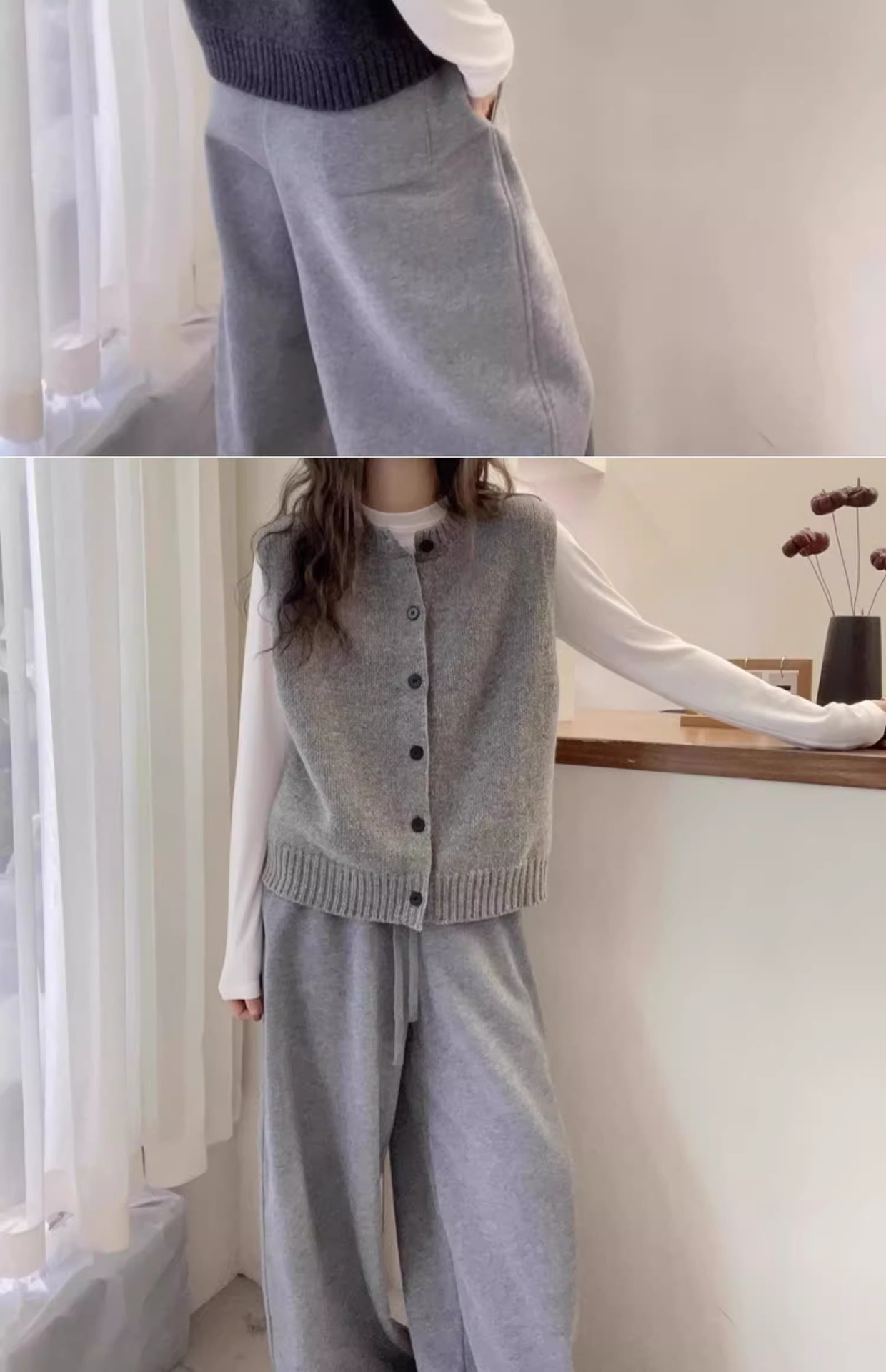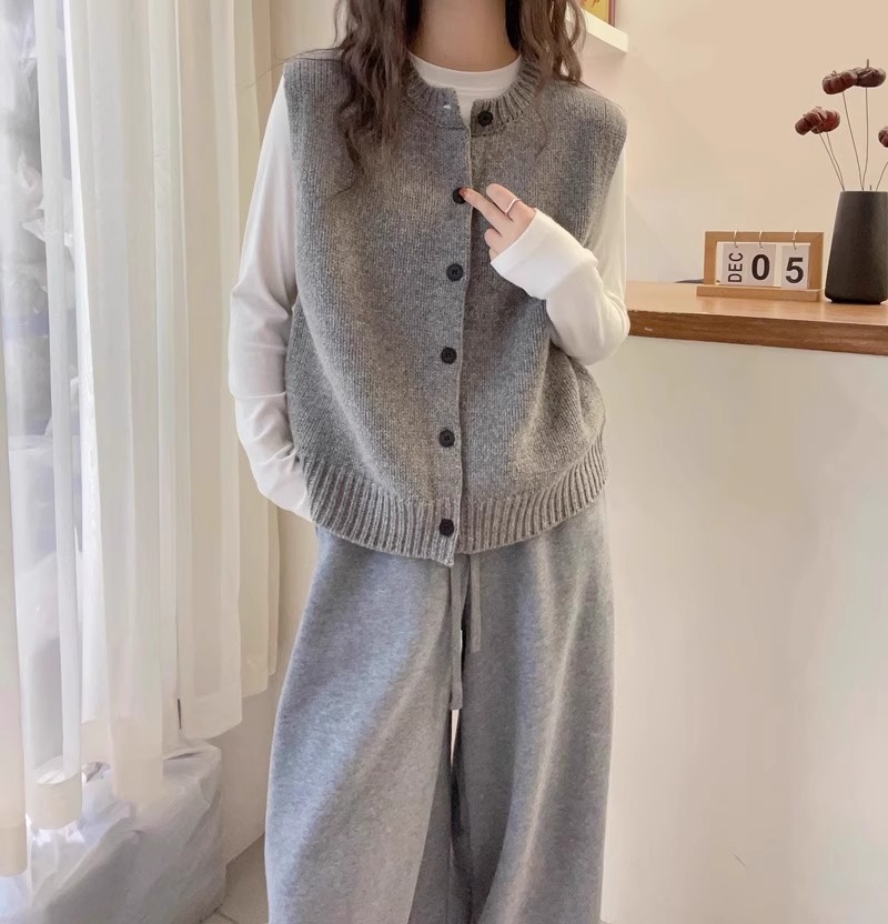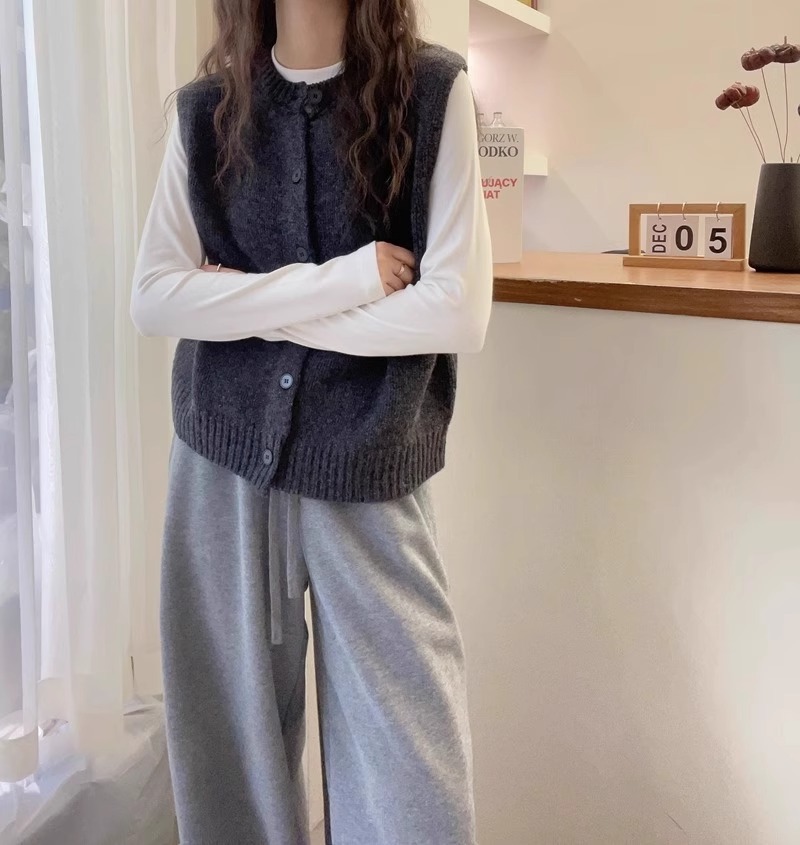 여성을위한 섹시한 회색 라운드 넥 니트 조끼 2025 봄, 가을 패션 스타일 레이어드 카디건 스웨터 조끼 민소매 탑스토어 가기