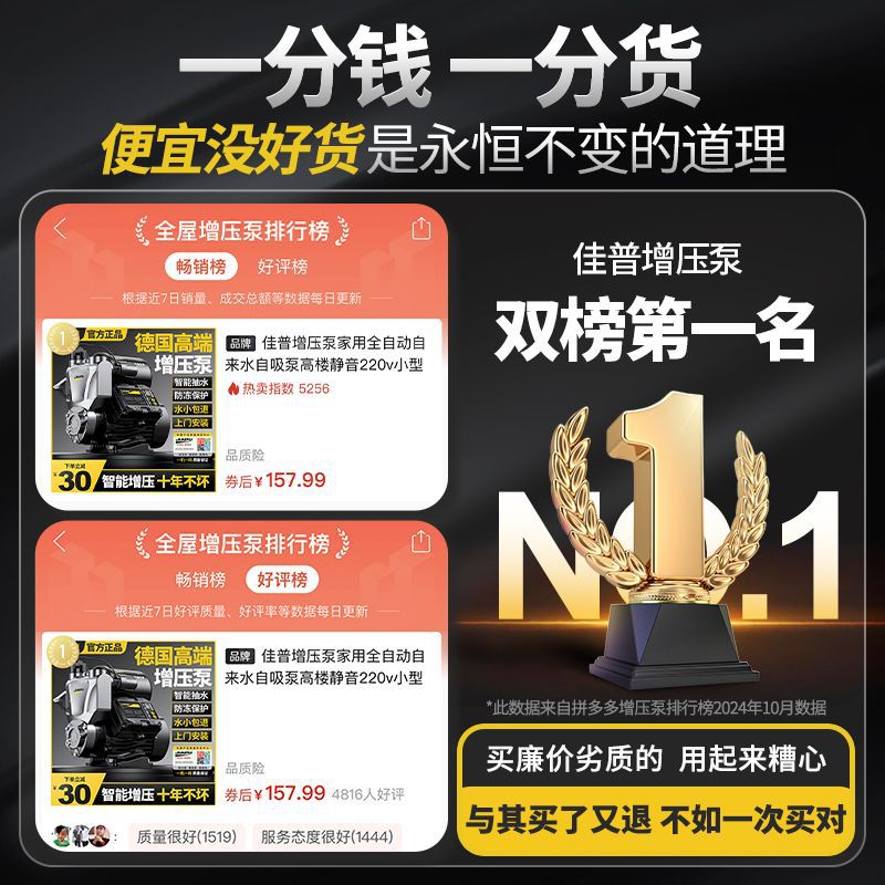 Jia Pu 부스터 펌프 가정용 완전 자동 수돗물 자체 흡입 펌프 고층 조용한 220v 소형 펌프 가압 펌프스토어 가기