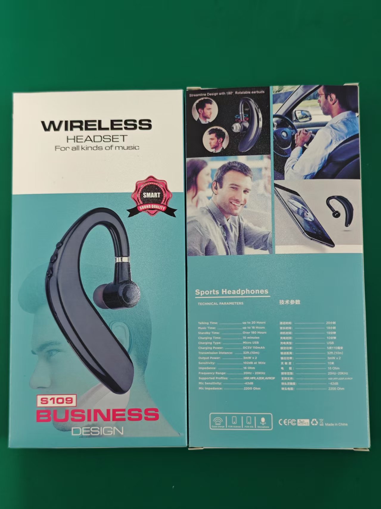 국경 간 비즈니스 모델 S109 무선 블루투스 헤드셋 5.3 싱글 이어 후크 스포츠 선물 헤드셋 스포츠 스타일스토어 가기