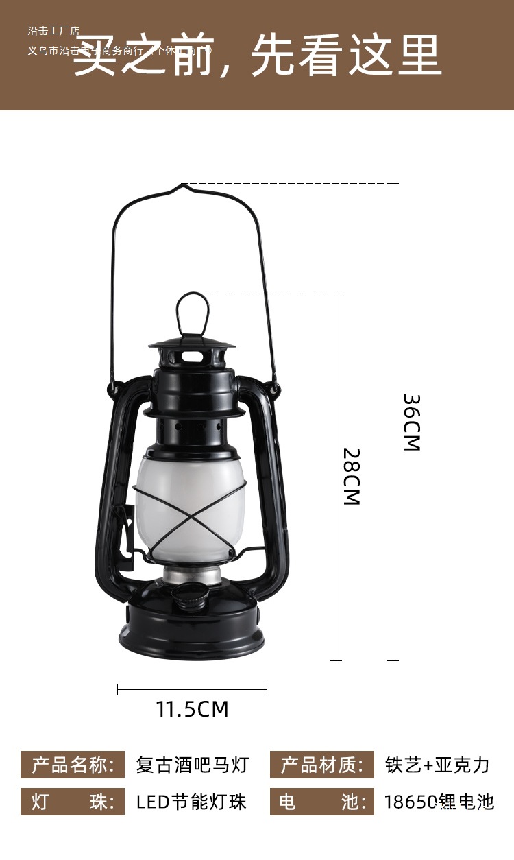 충전식 바 테이블 램프 장식 분위기 램프 크리 에이 티브 복고풍 말 랜턴 야외 소품 캠핑 등유 램프 테이블 램프 랜턴스토어 가기