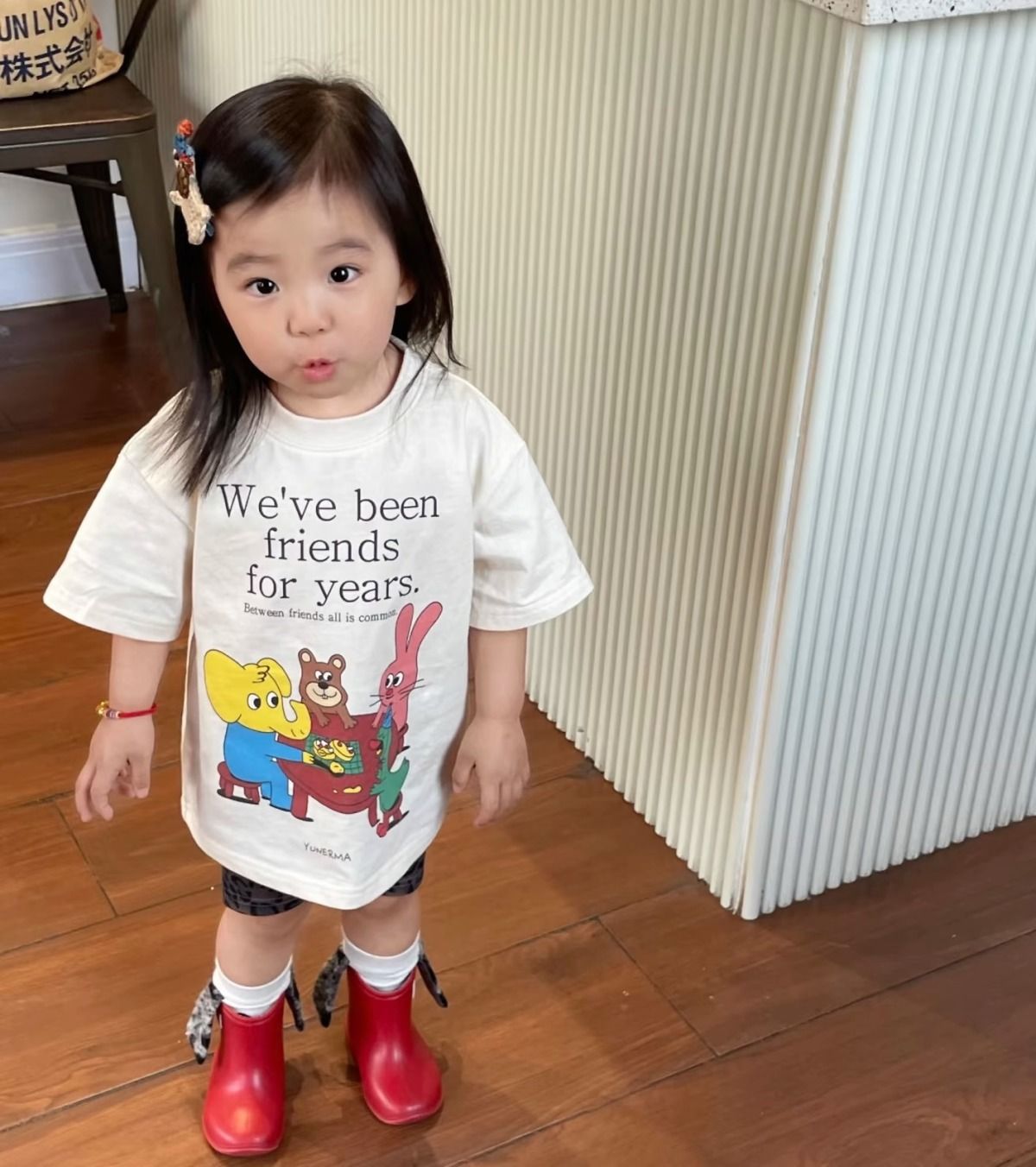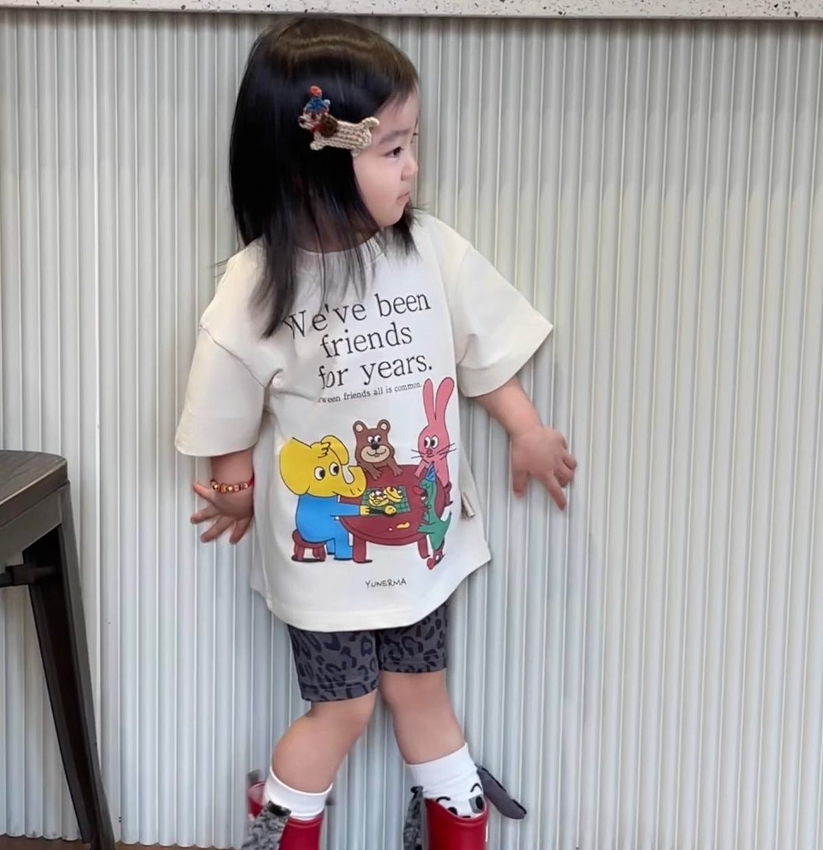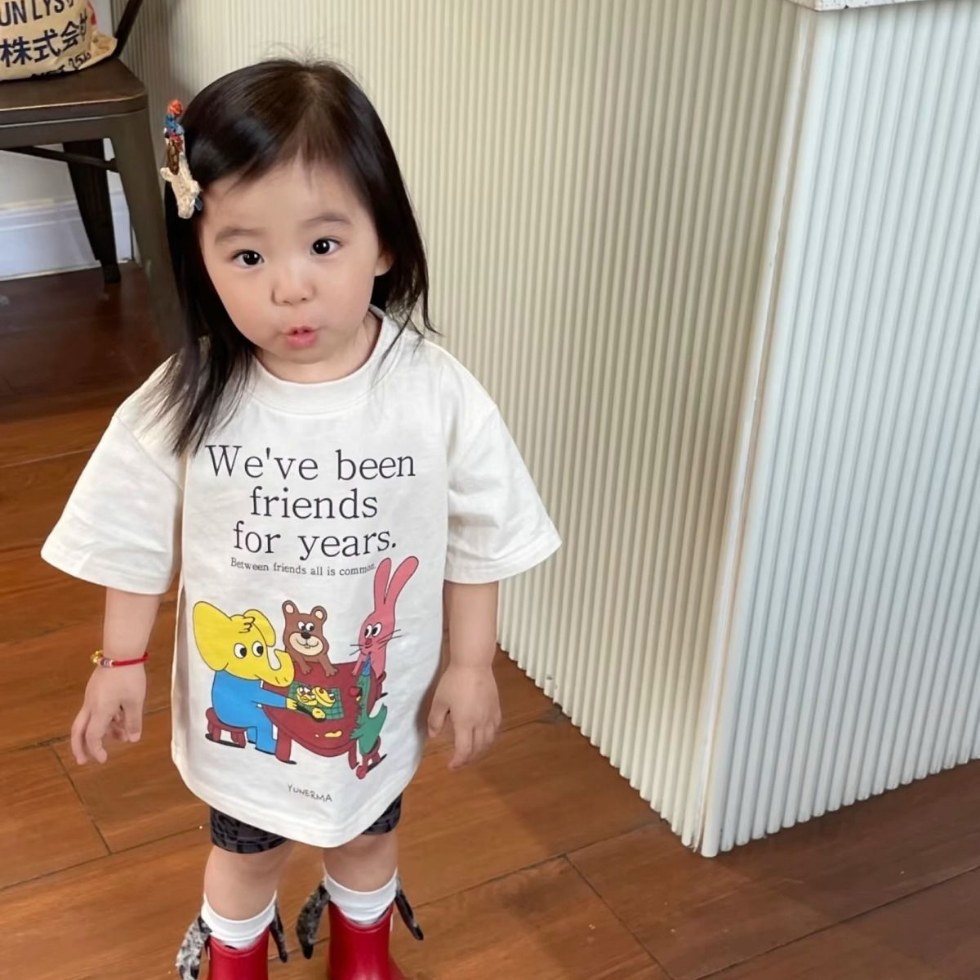 아기 소녀 귀여운 만화 편지 인쇄 캐주얼 느슨한 다목적 반팔 탑 어린이 여름 잘 생긴 반팔 T스토어 가기