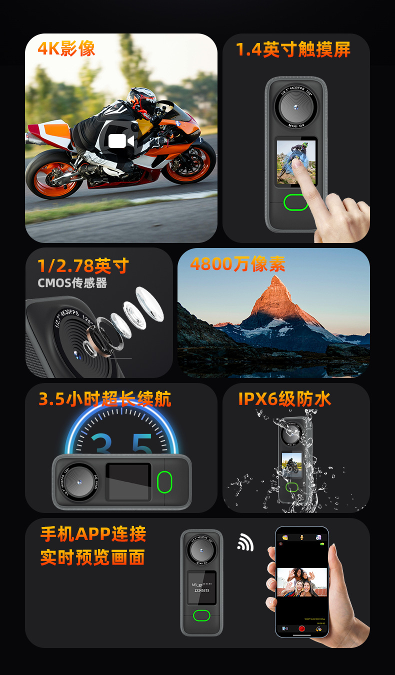 4K 터치 스크린 야외 사이클링 스포츠 카메라 무선 WIFI 휴대 전화 상호 연결 고화질 휴대용 DV 사진 카메라