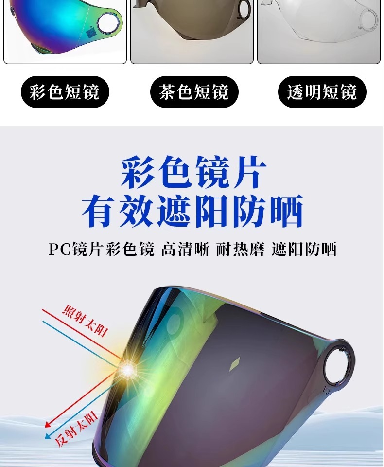 헬멧 바이저 렌즈 전기 자동차 헬멧 투명 고화질 컬러 자외선 차단제 자외선 차단 앞유리 범용