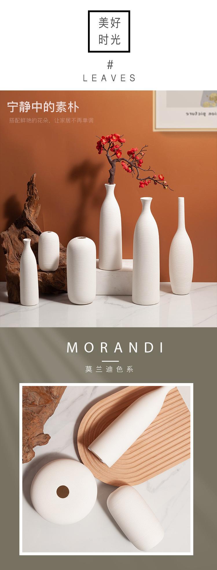 미니멀리스트 중국 세라믹 대형 꽃병, 고급 장식품, 거실 꽃꽂이, 말린 꽃 장식, 일반로 구운 브러시드 화이트 세라믹 냄비스토어 가기