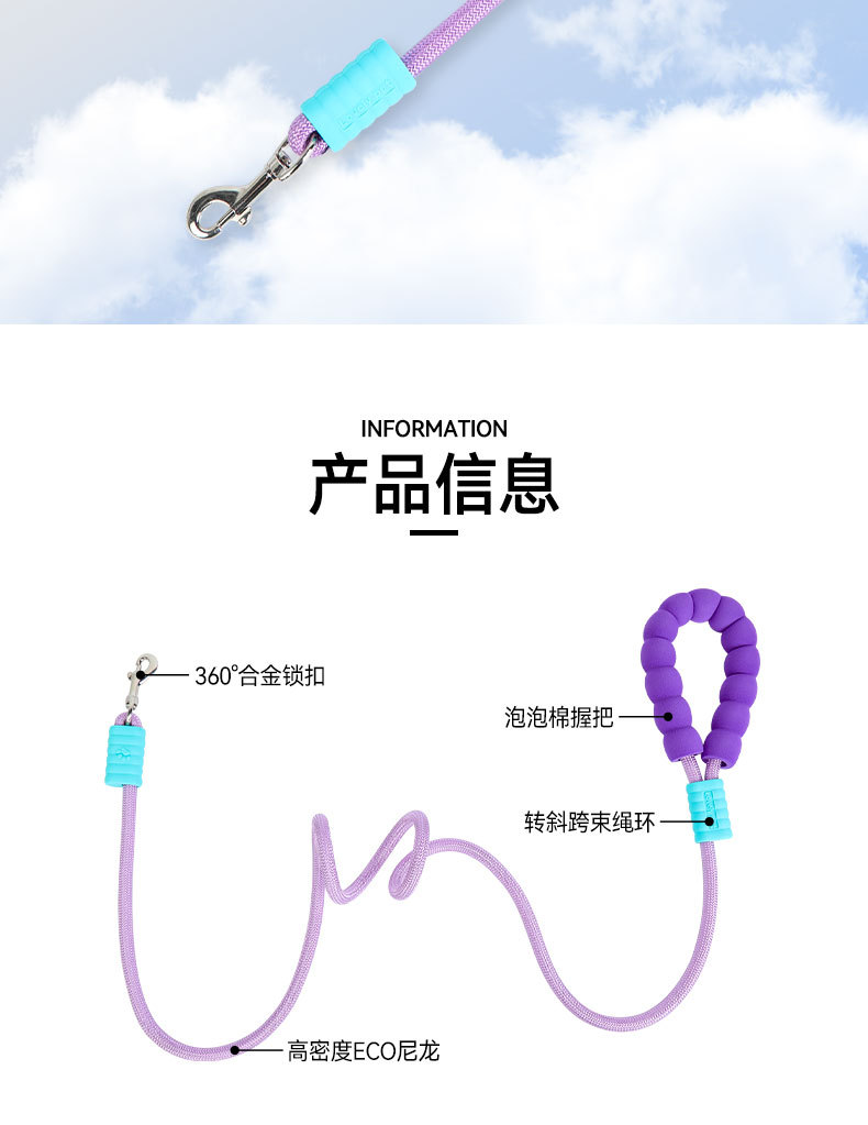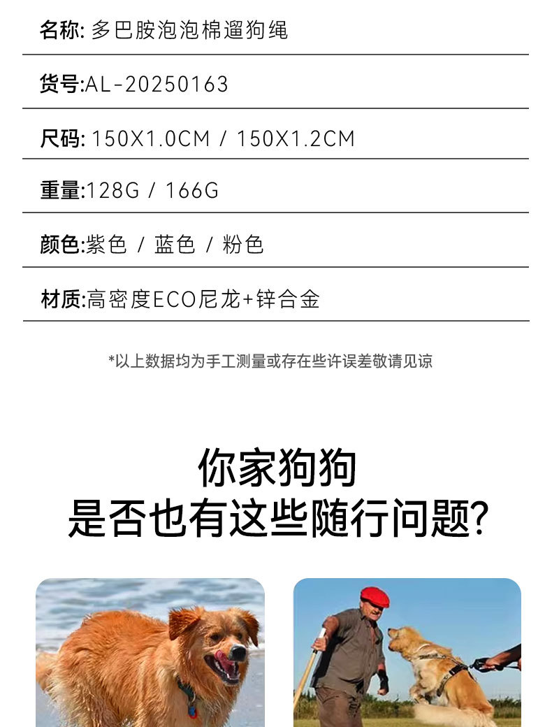도파민 애완 동물 가죽 끈 부드러운 스폰지 개 산책 로프 중형 개 나일론 로프 개 가죽 끈 애완 동물 용품 도매