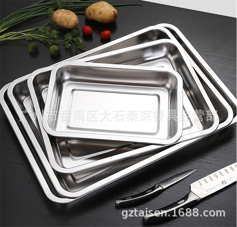 1cm 1.0 두께의 스테인레스 스틸 트레이 직사각형 사각형 접시 생선 찜 접시 죽이 접시 만두 접시 찜 밥 철판 바베큐 접시스토어 가기