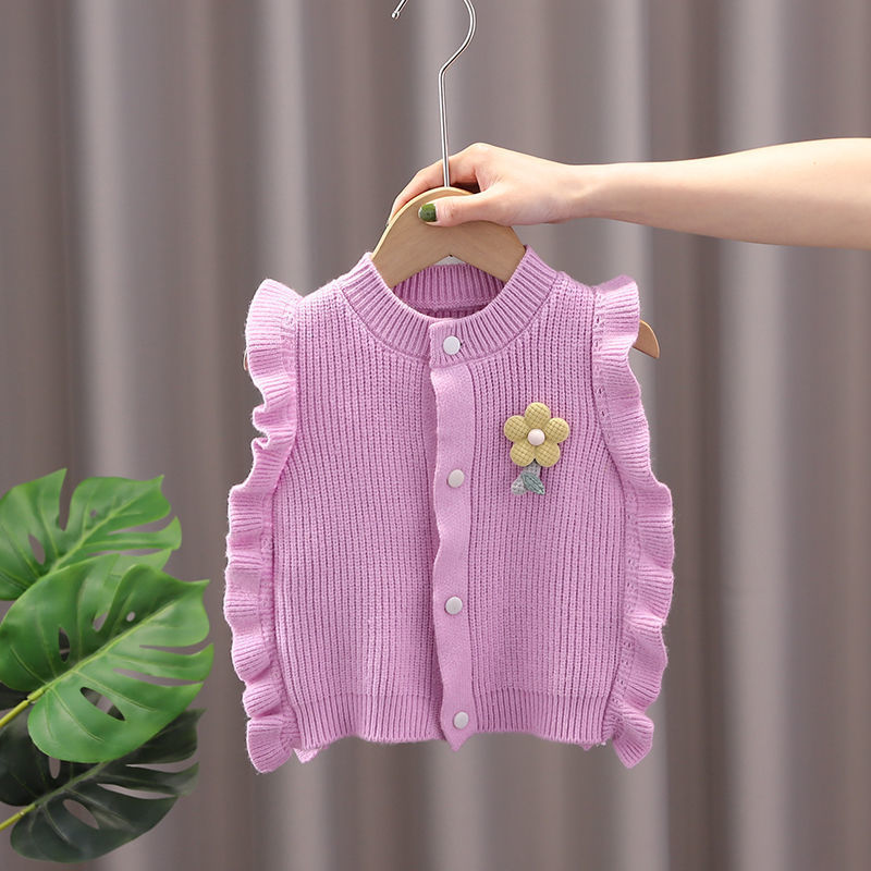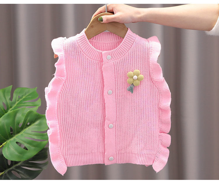 아기 조끼 어린이 조끼 봄과 가을 겉옷 22 새로운 스타일 소녀 니트 양모 조끼 아기 카디건 봄 배송