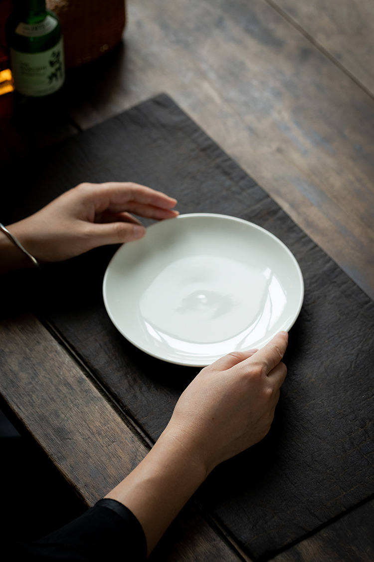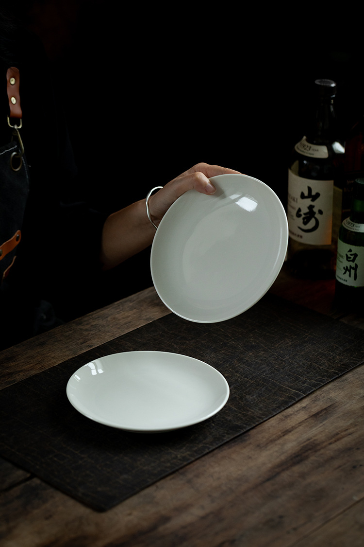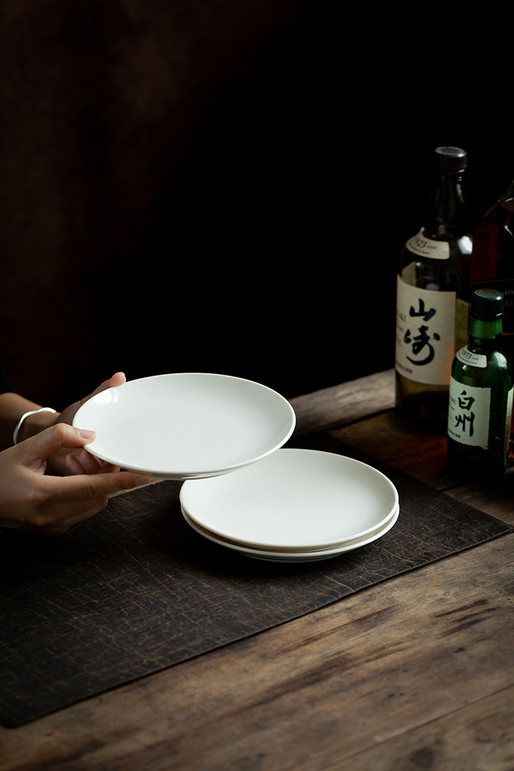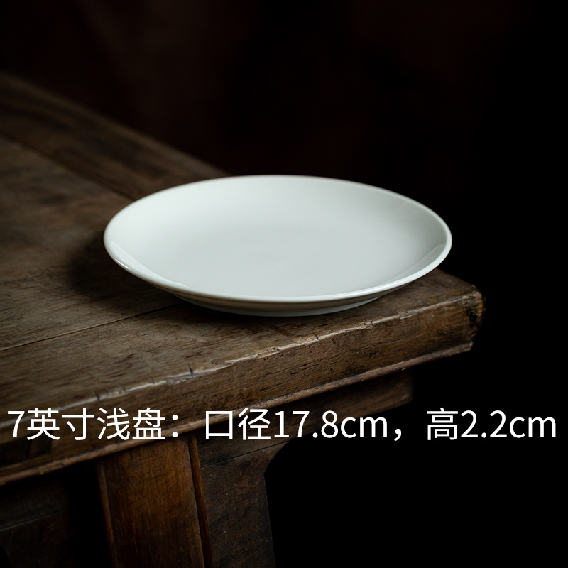 [미색] 원형 얕은 접시 6.3/ 7inch 데화 백자 서양식 스테이크 파스타 접시 세라믹 디저트 접시스토어 가기