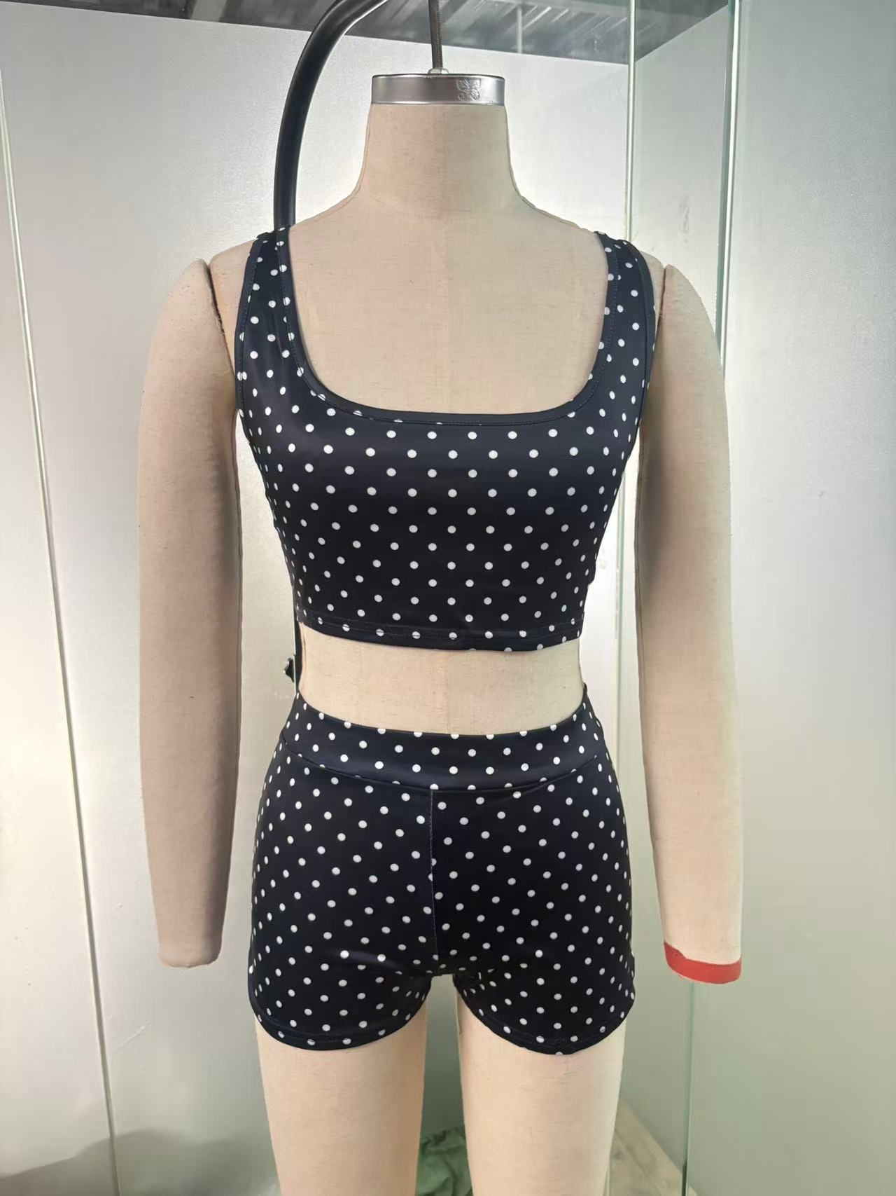 2025 유럽과 미국의 국경 간 대외 무역 여성 홈웨어 세트 폴카 도트 프린트 캐주얼 조끼 탑 반바지 세트스토어 가기