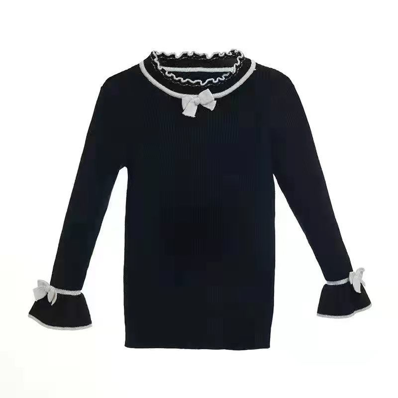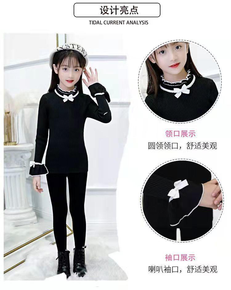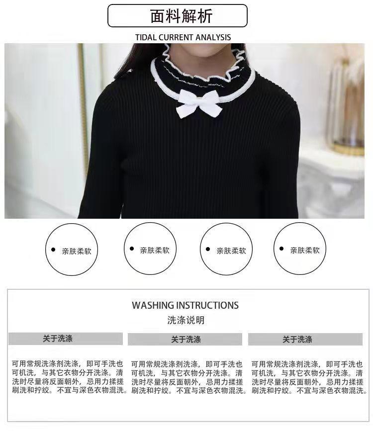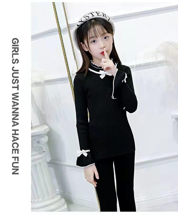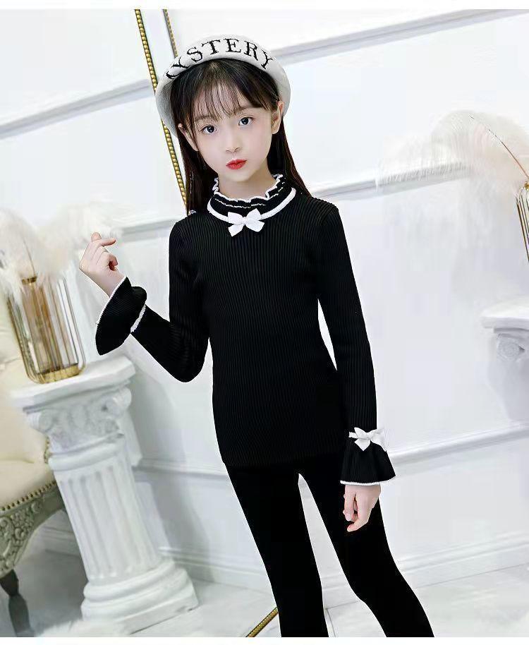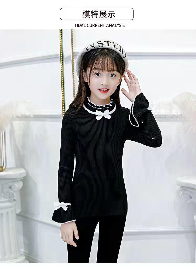 여아 스웨터 새로운 바닥 셔츠 아동복 한국식 중대형 아동 패션 라운드 넥 긴팔 보우 여성용 스웨터