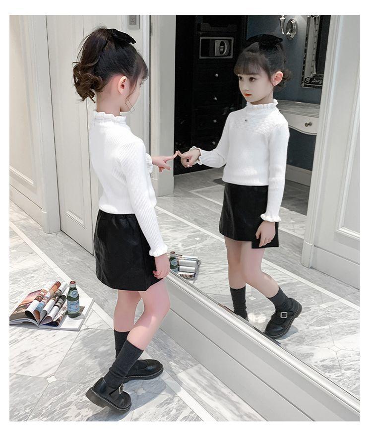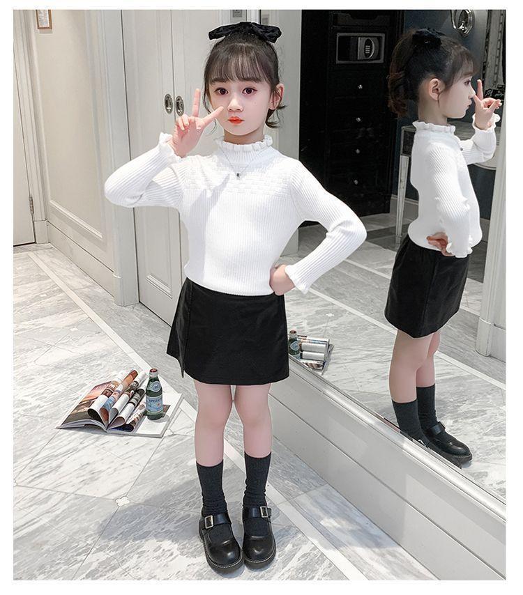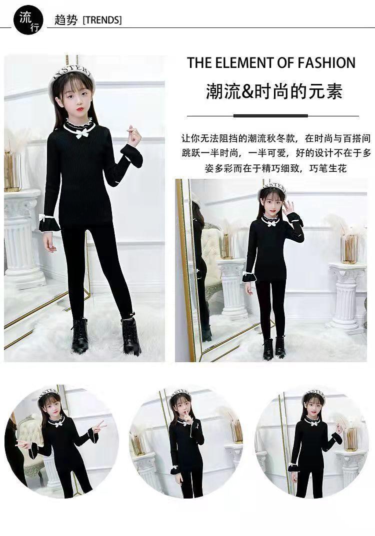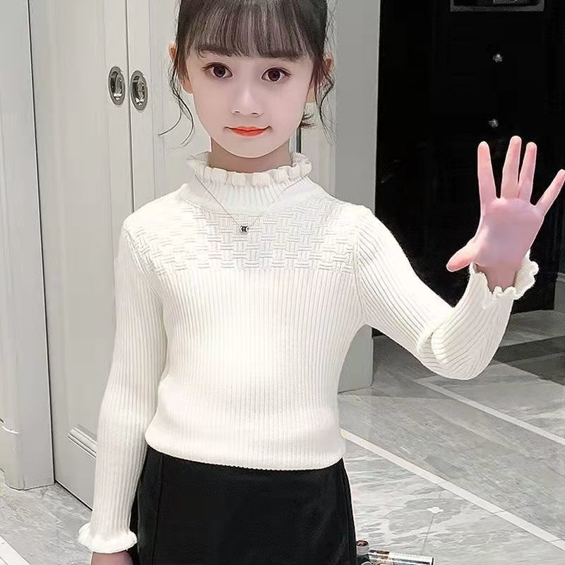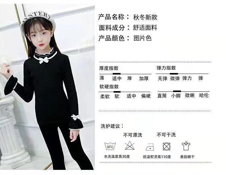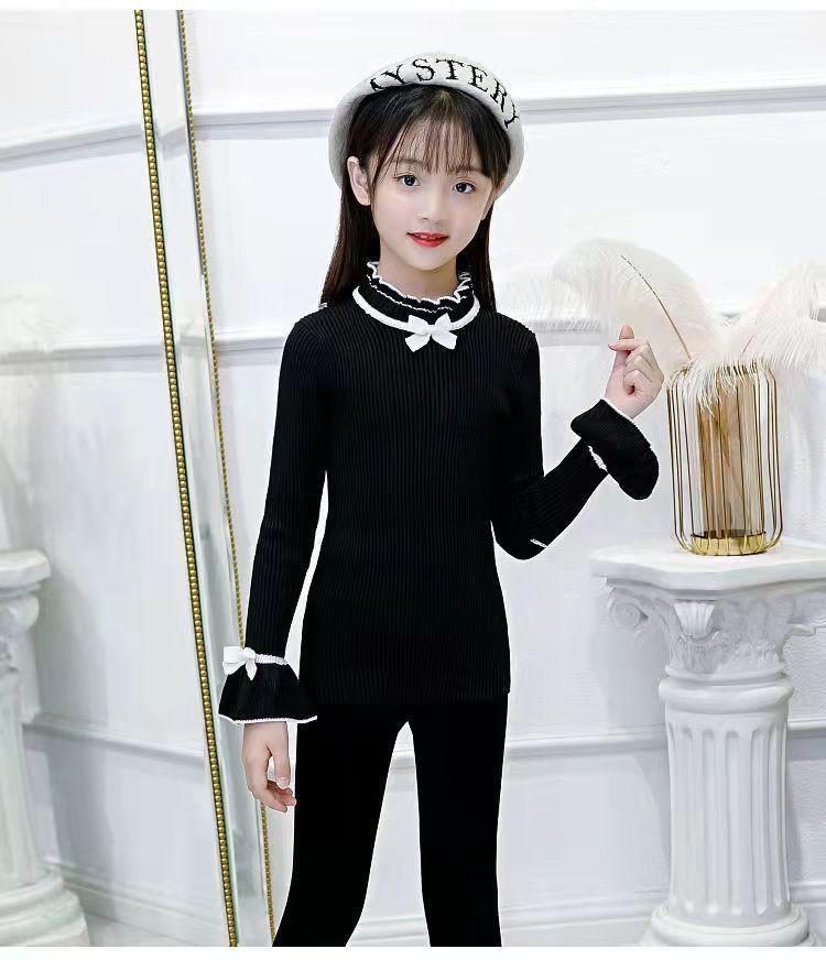 여아 스웨터 새로운 바닥 셔츠 아동복 한국식 중대형 아동 패션 라운드 넥 긴팔 보우 여성용 스웨터