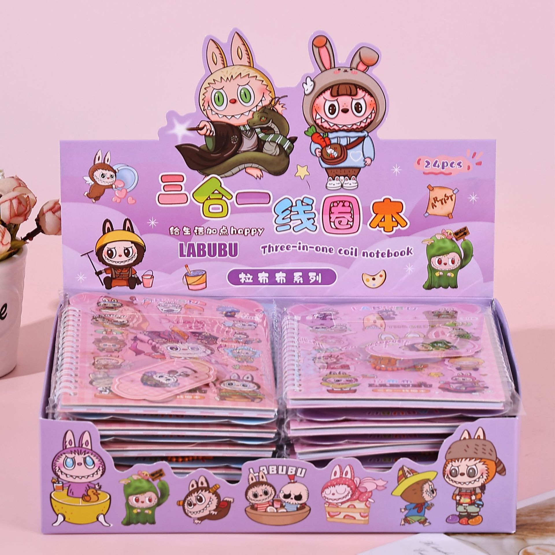 만화 핫셀링 라부부 3-in-1 코일북 귀여운 핸드북 PET 소재북 크로스보더 LABUBU 스티커북스토어 가기
