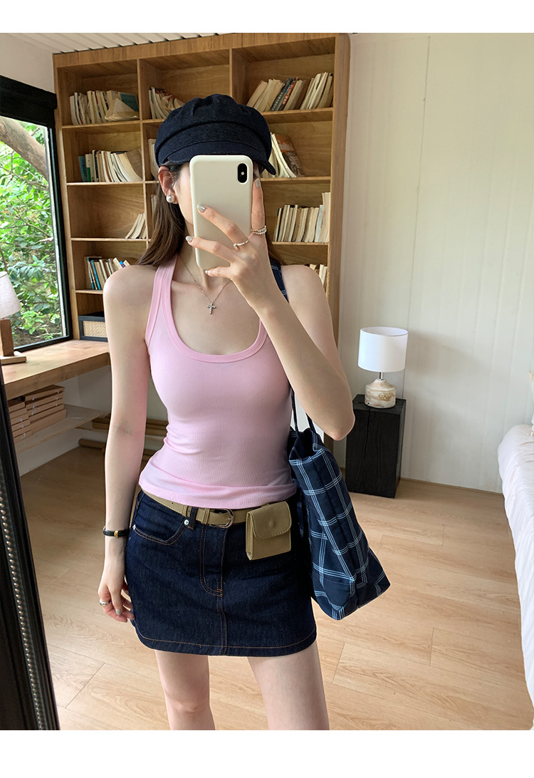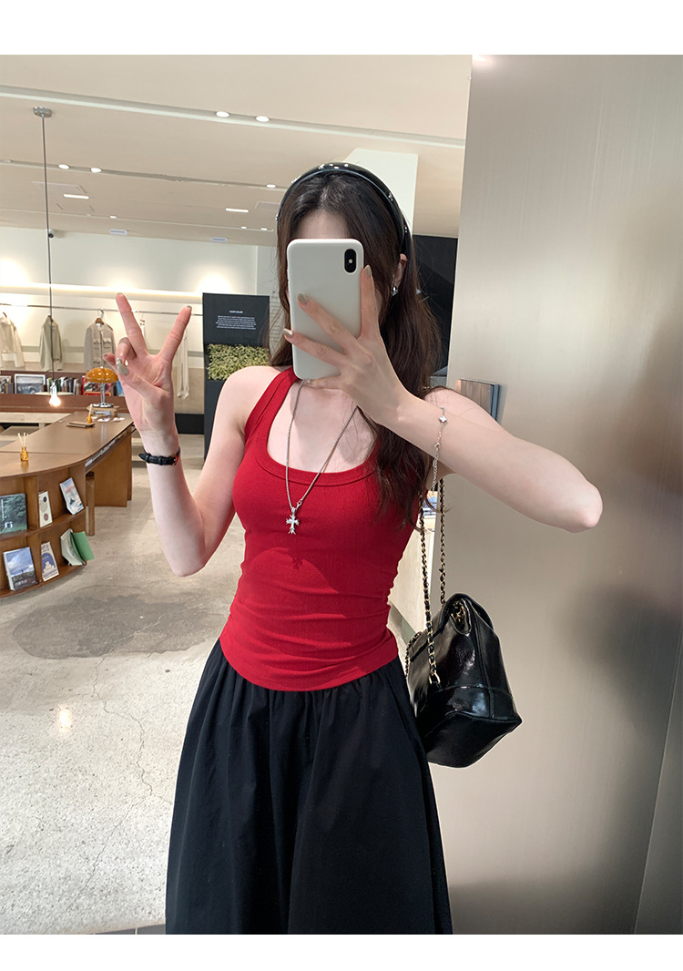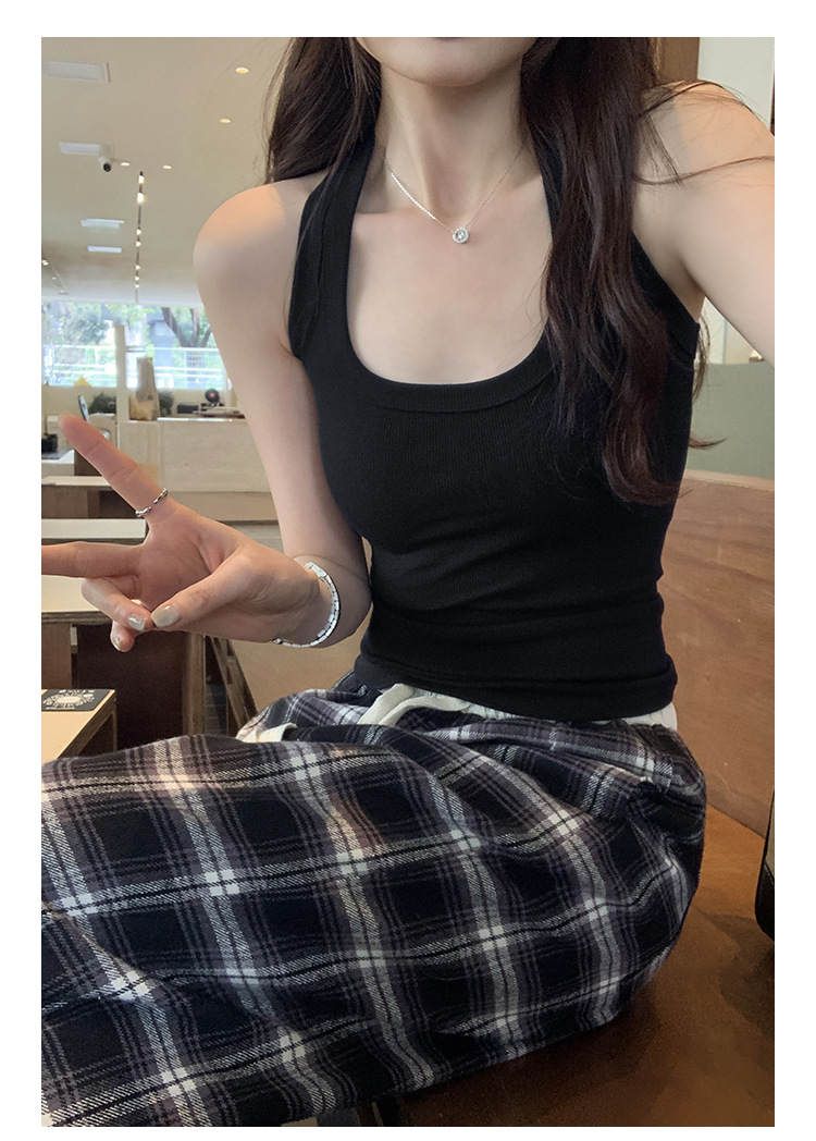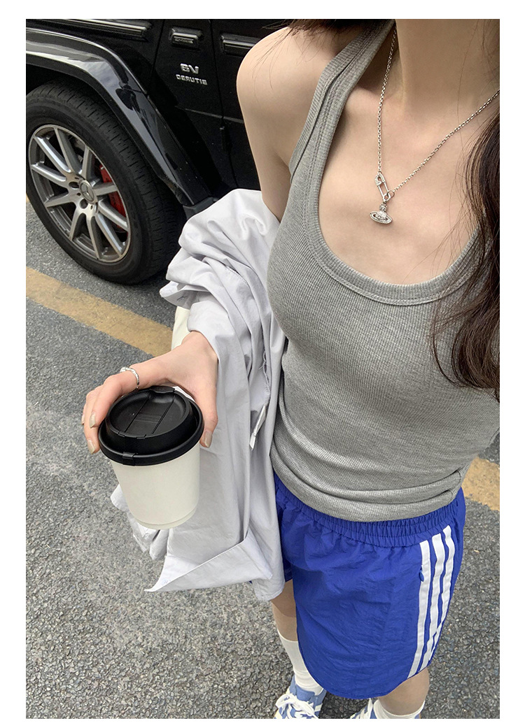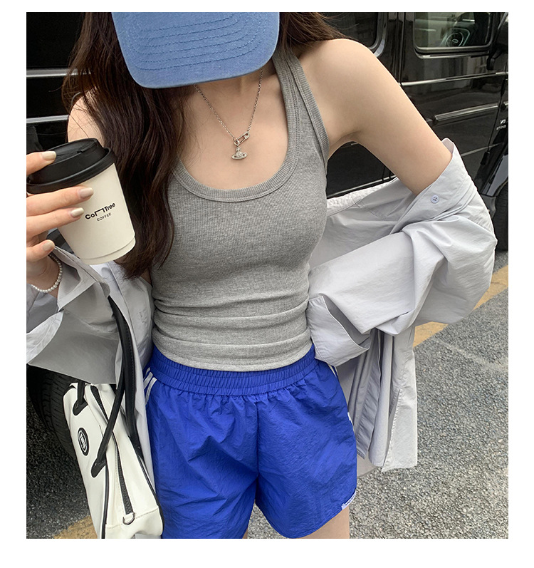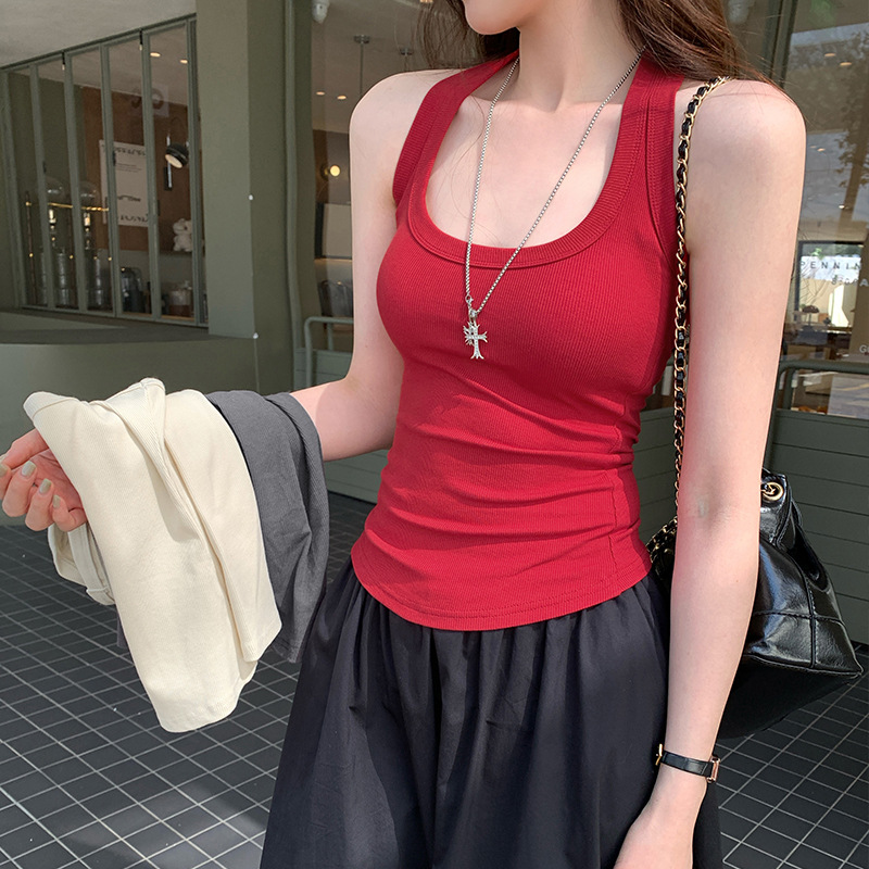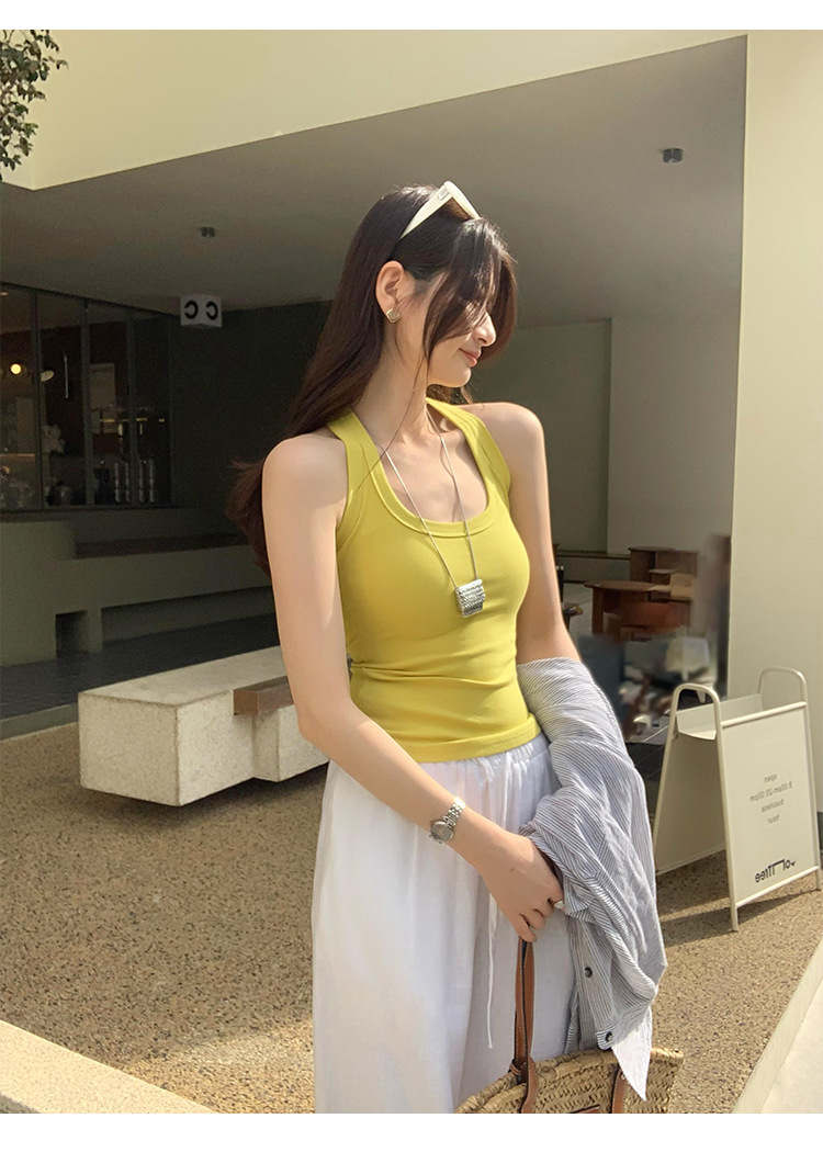 핫걸 민소매 U 넥 슬림 홀터넥 스포츠 캐미솔 여성 여름 새로운 기질 이너 레이어링 탑 여성용스토어 가기