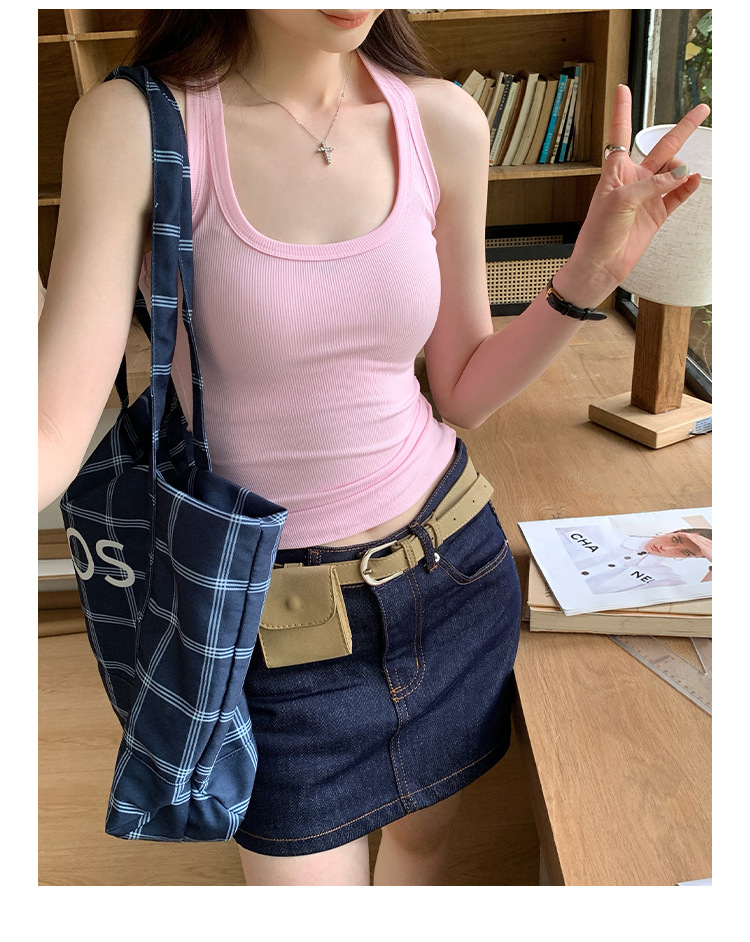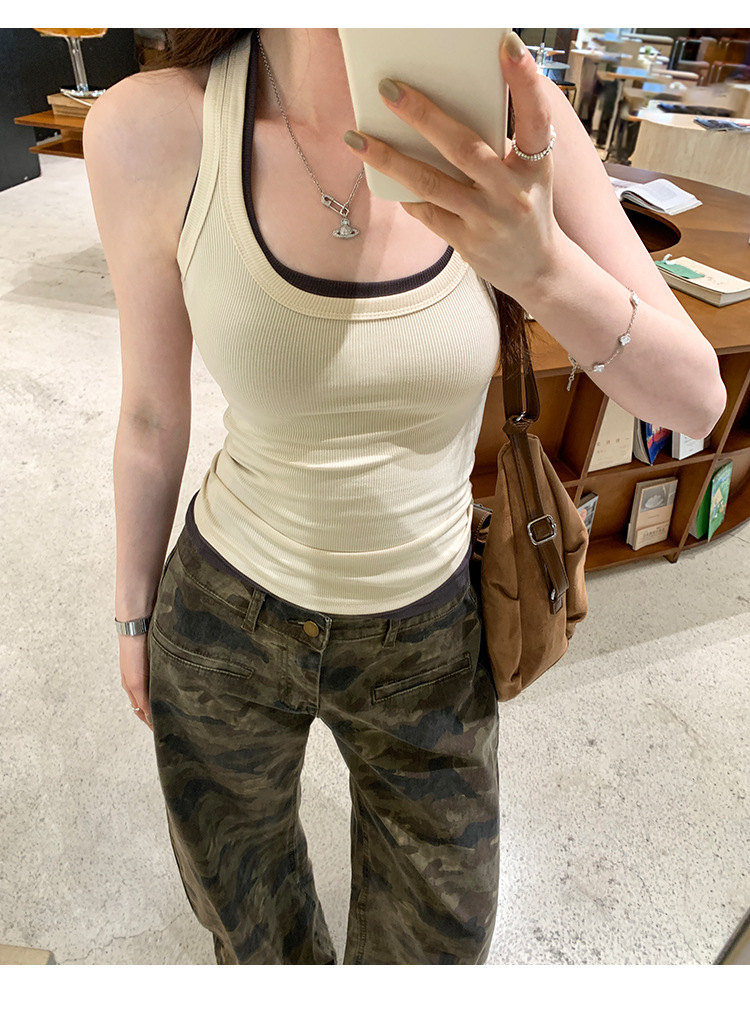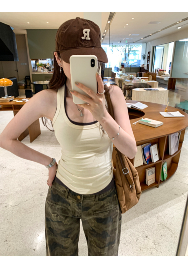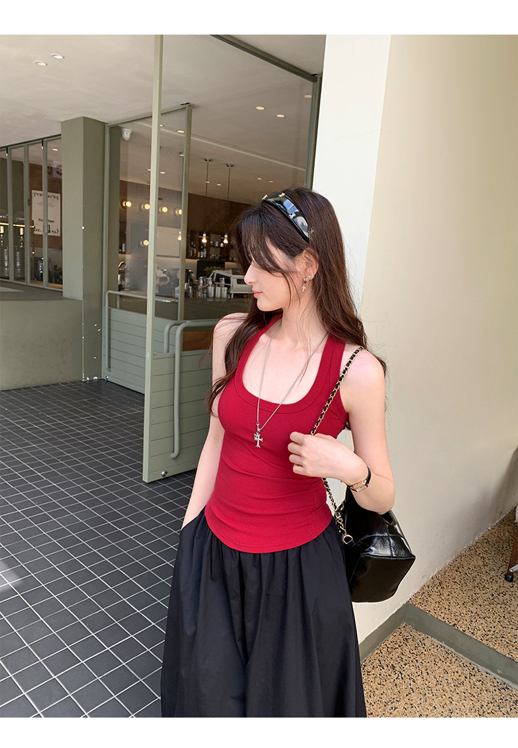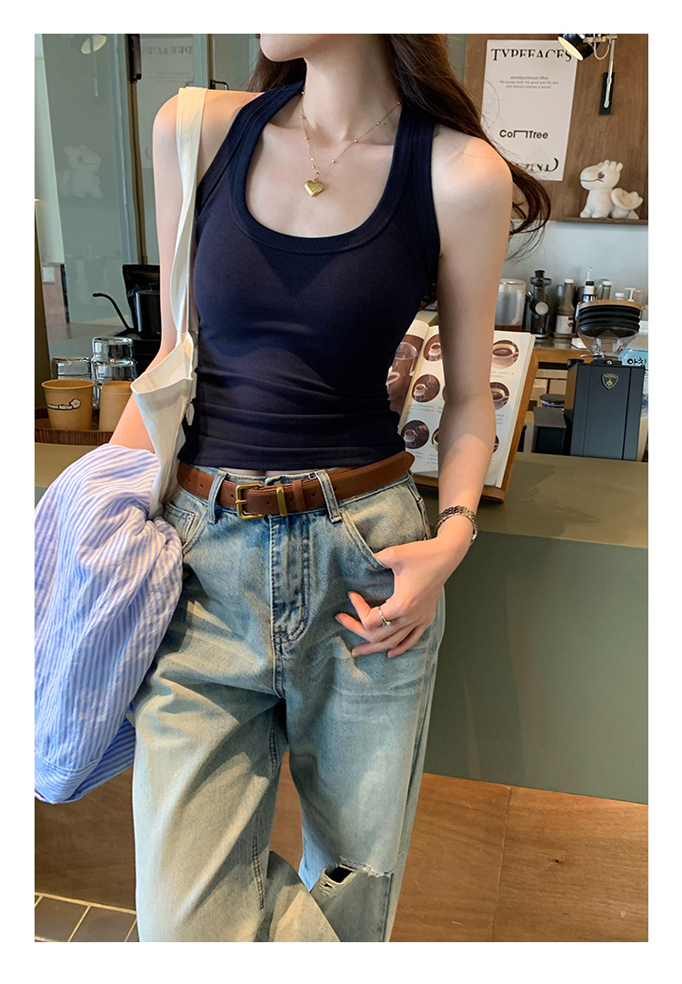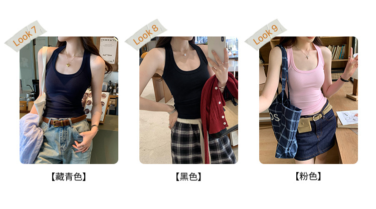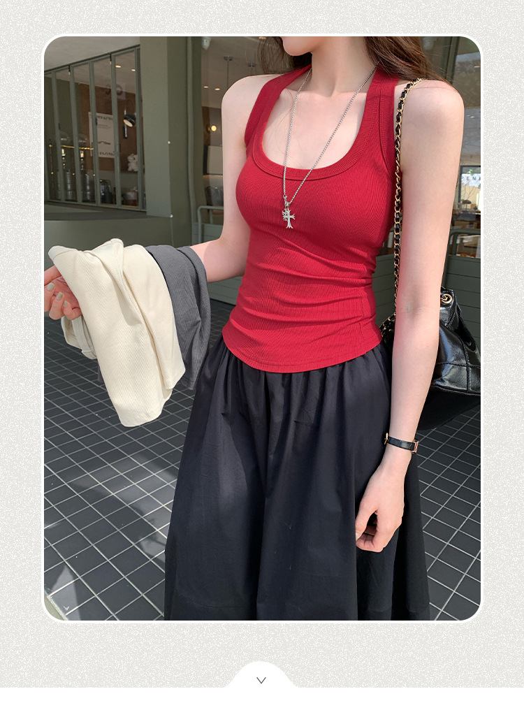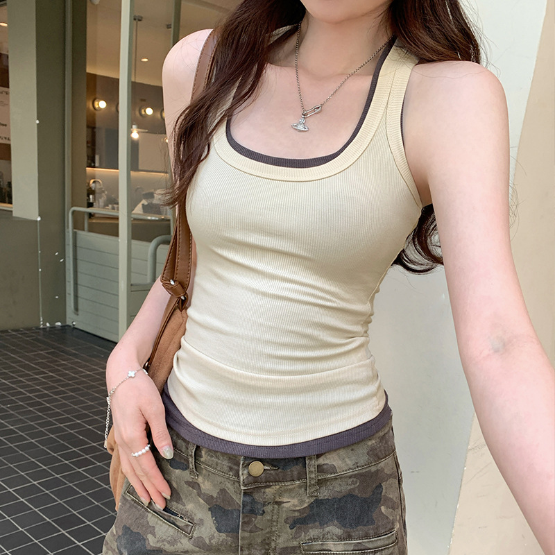 핫걸 민소매 U 넥 슬림 홀터넥 스포츠 캐미솔 여성 여름 새로운 기질 이너 레이어링 탑 여성용스토어 가기