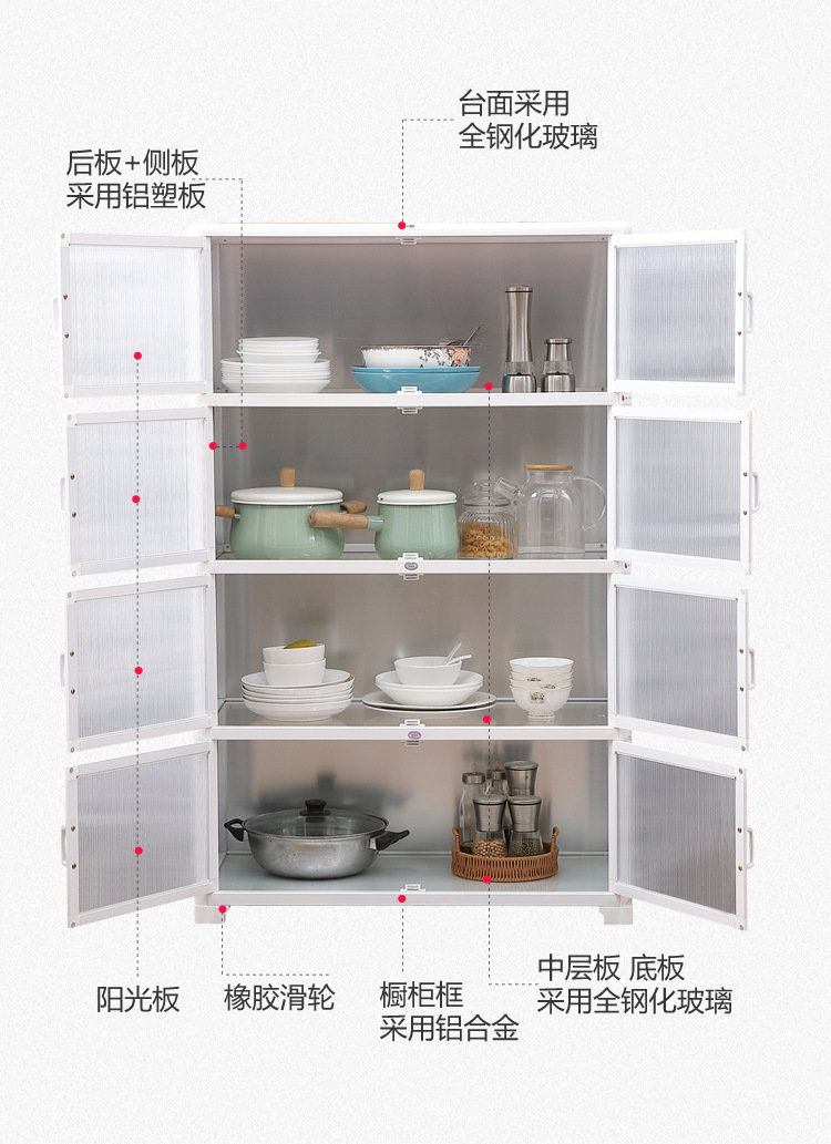 주방 수납 선반, 다층 바닥 수납 캐비닛, 다기능 가정용 식기 수납 캐비닛, 알루미늄 합금 캐비닛