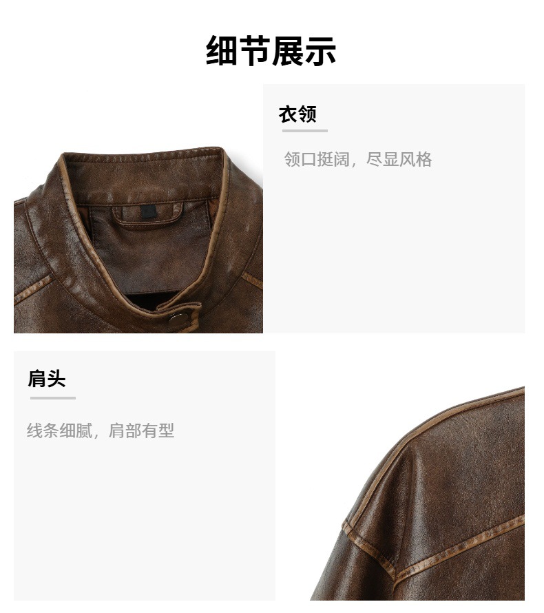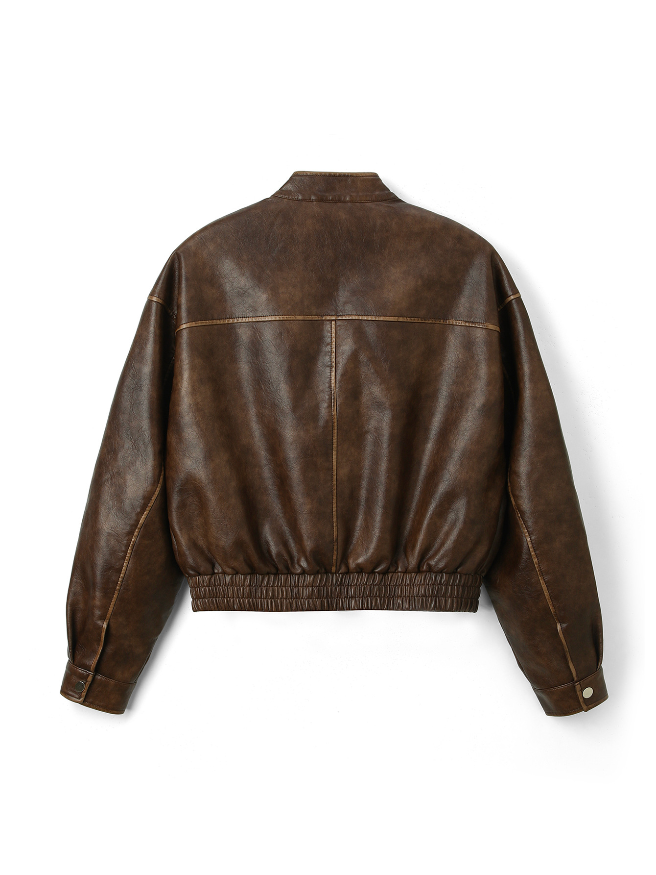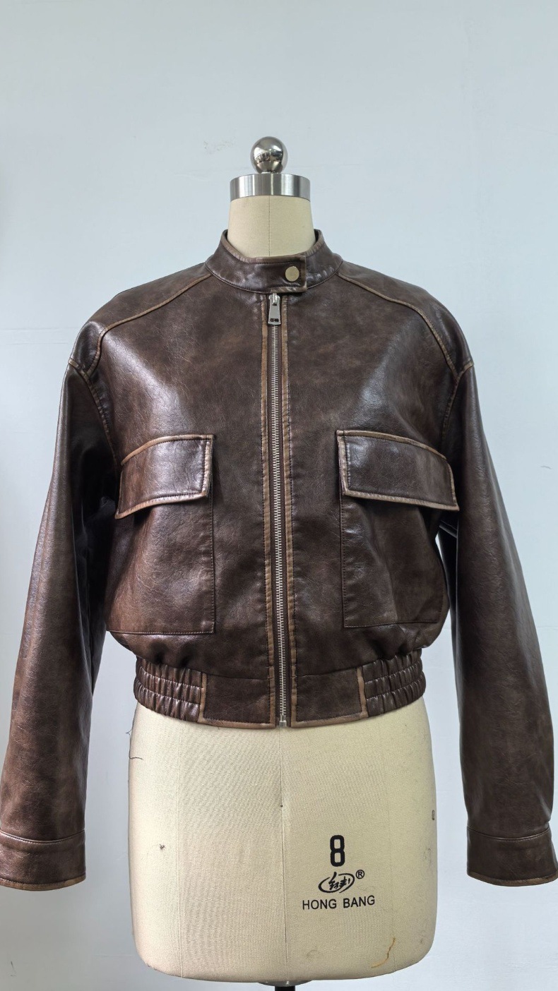 크로스보더 브라운 PU 가죽 재킷, 여성용 레트로 빈티지 스타일, 루즈핏 워크웨어, 스탠드 칼라 지퍼 재킷, 유럽 및 미국 스타일스토어 가기