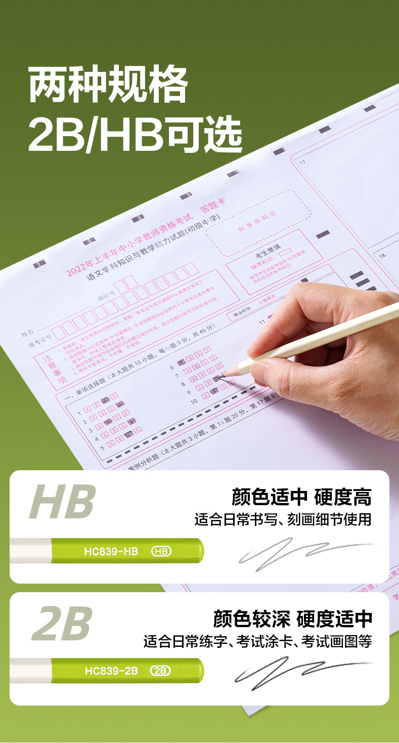 델리 HB/2B 연필 초등학생 1학년 유치원 어린이 서예 쓰기 및 그림 연습 육각형 나무 막대