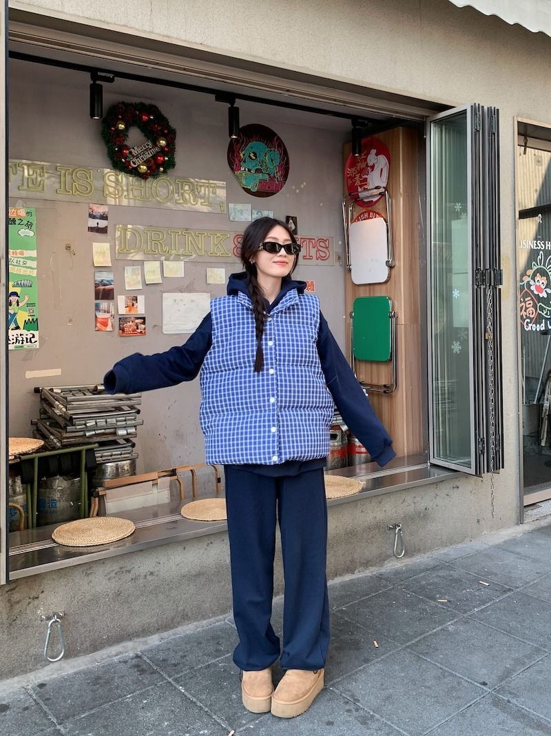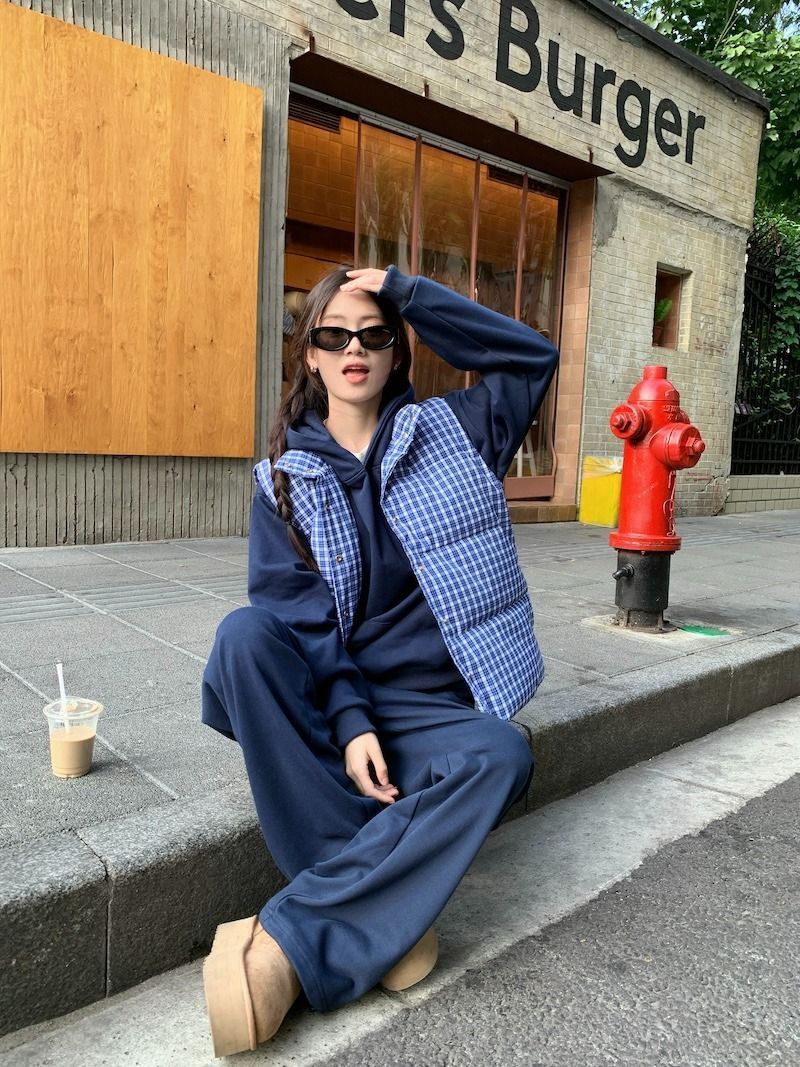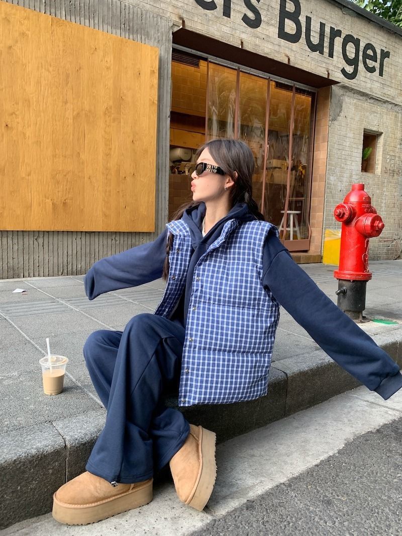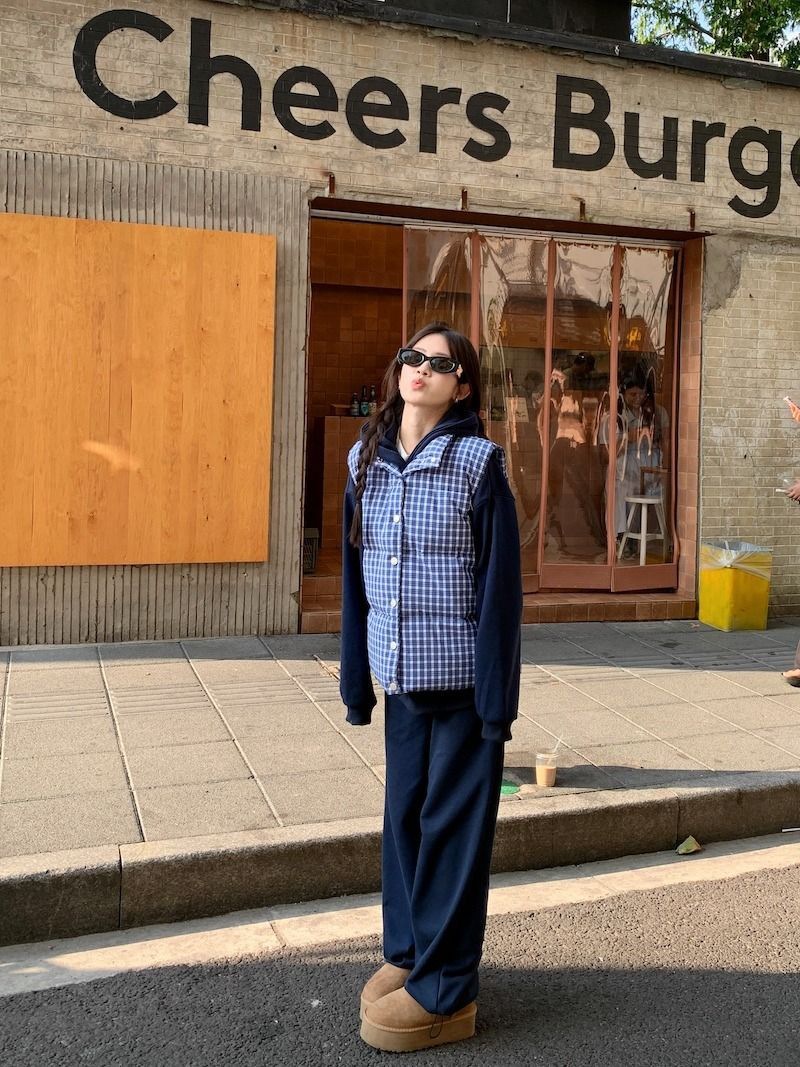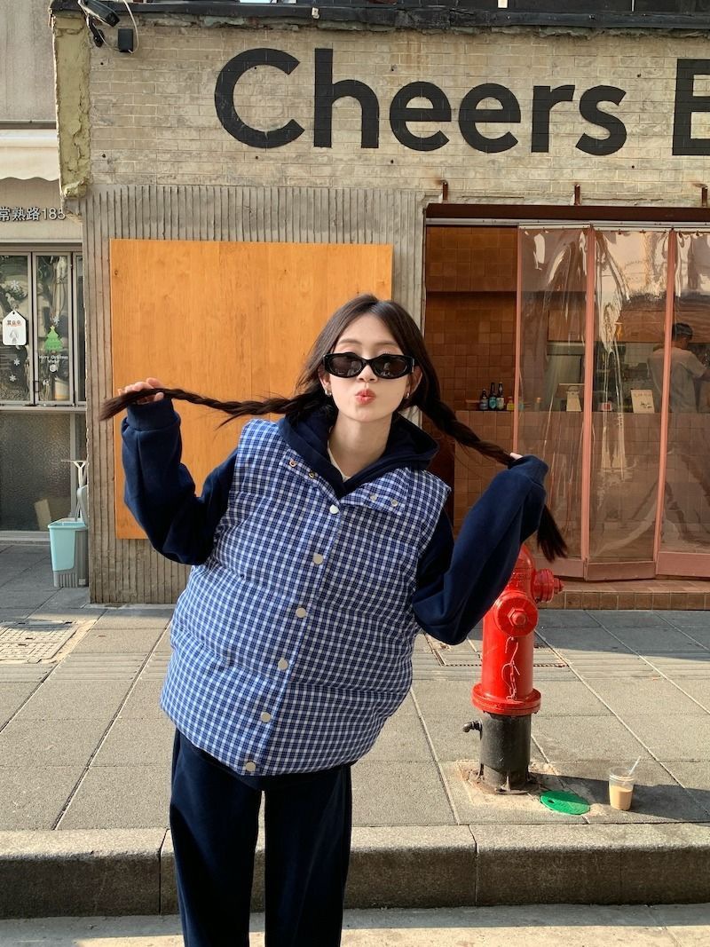 2025년 가을 겨울 여성을 위한 스탠드 칼라 격자 무늬 민소매 코튼 조끼 재킷 새로운 스타일 레이어드 캐주얼 루즈 조끼스토어 가기