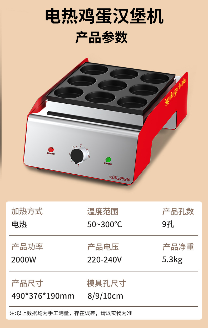 에그버거머신, 상업용 휠케이크머신, 미트버거팬, 전기미트버거오븐, 9홀 전기튀김기