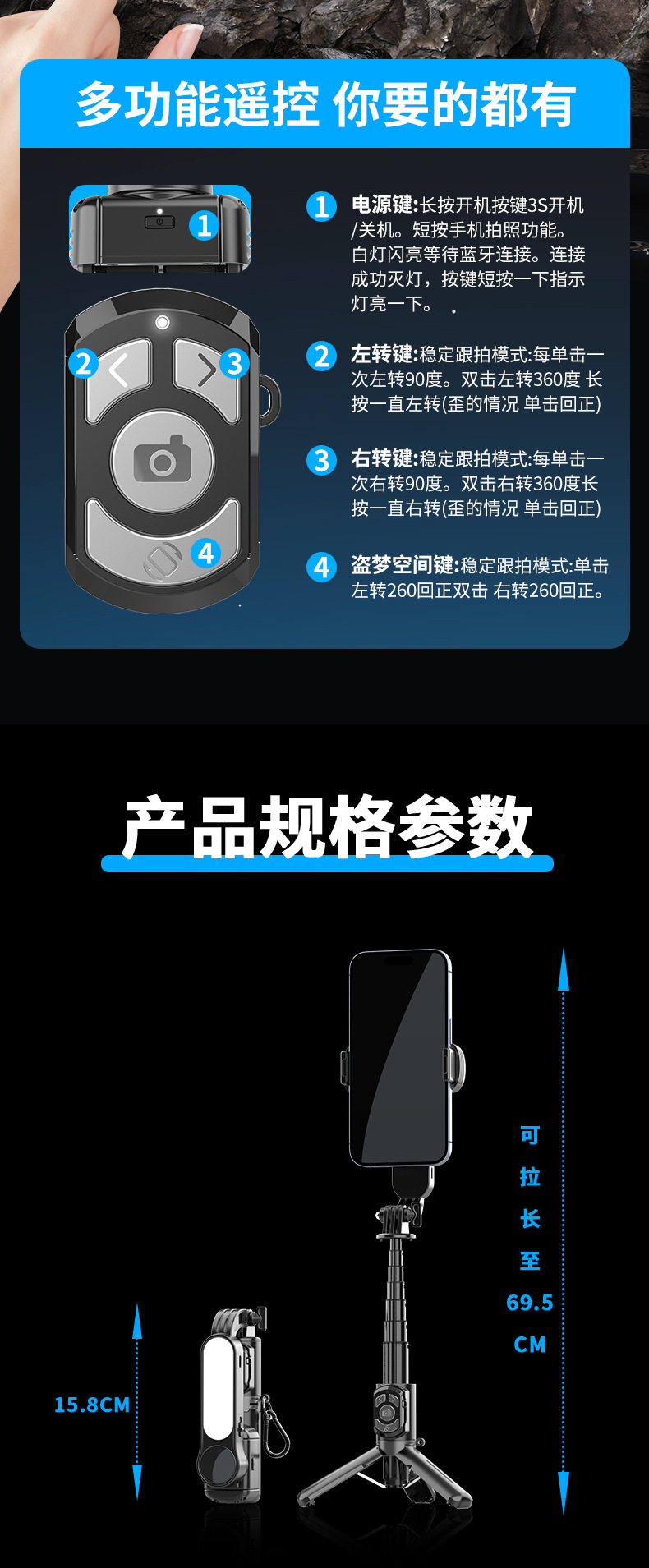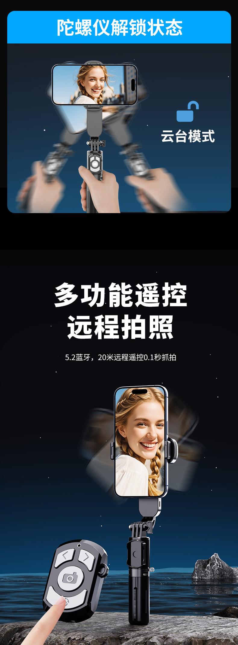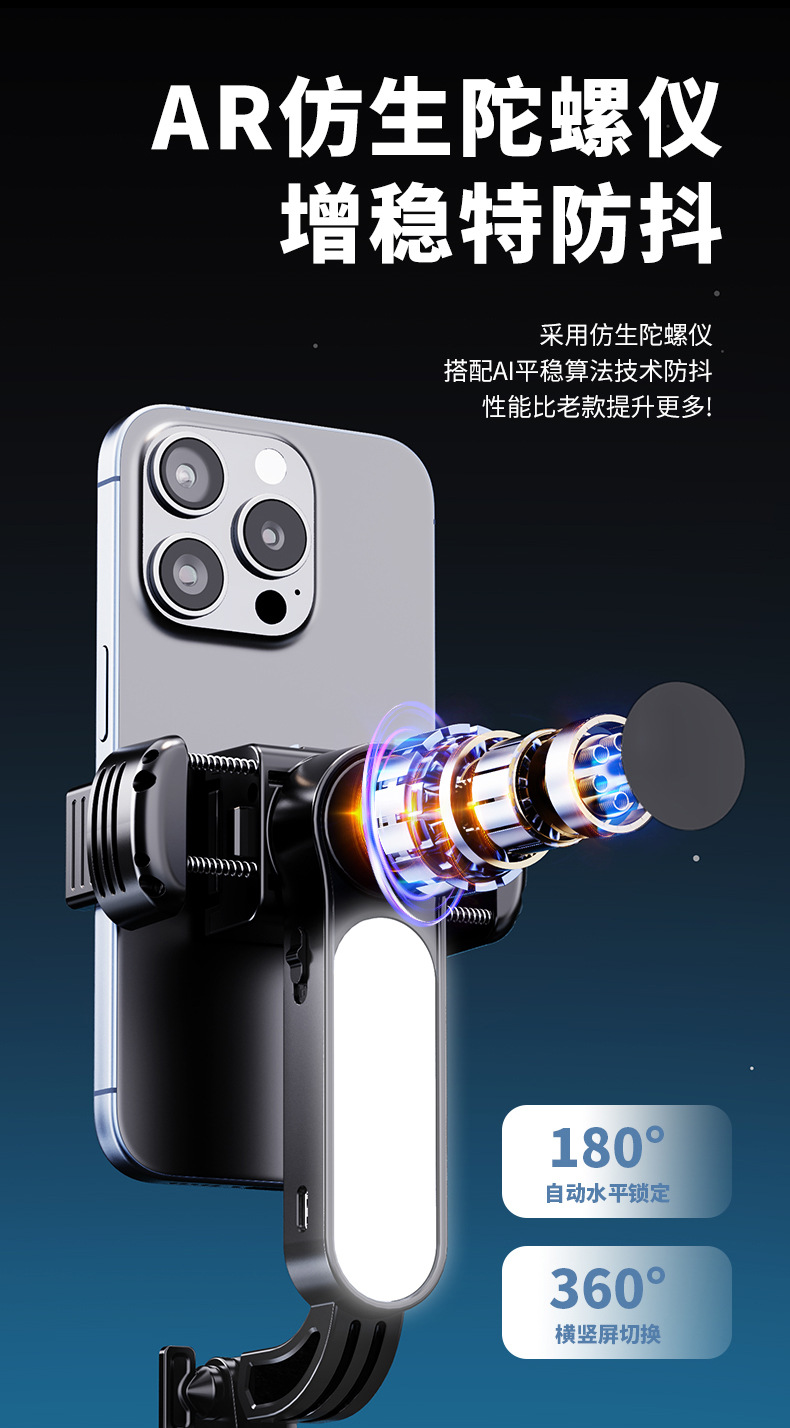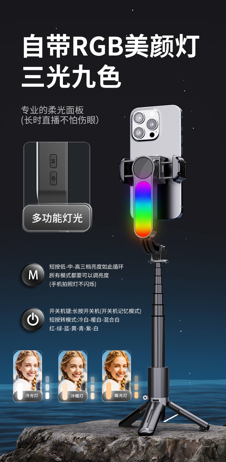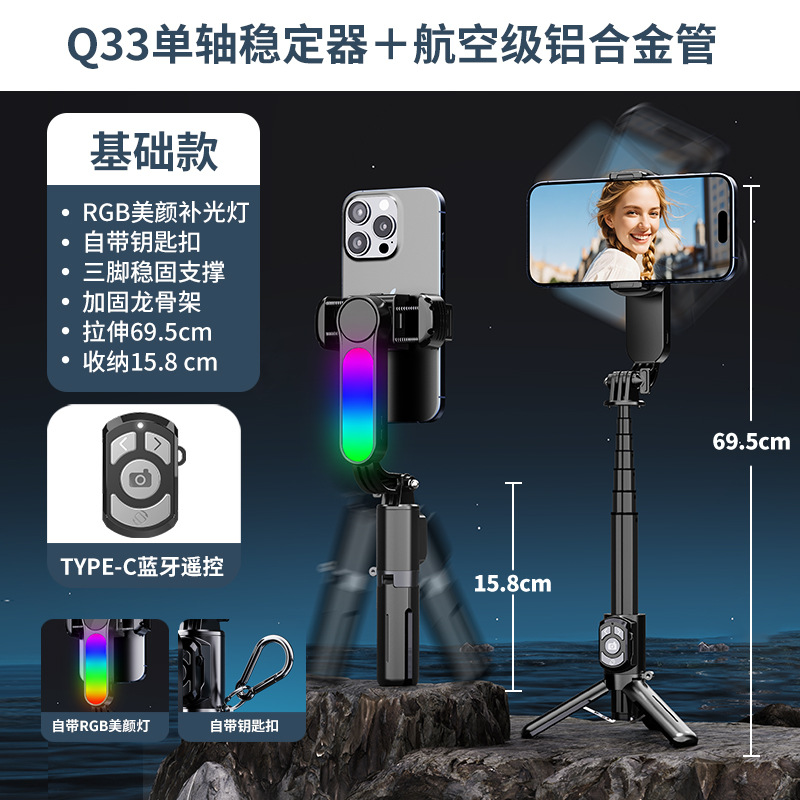 새로운 도착 Q33RGB 라이트 미니 셀카 스틱 손떨림 방지 확장형 휴대 전화 사진 삼각대 단일 축 전화 안정기