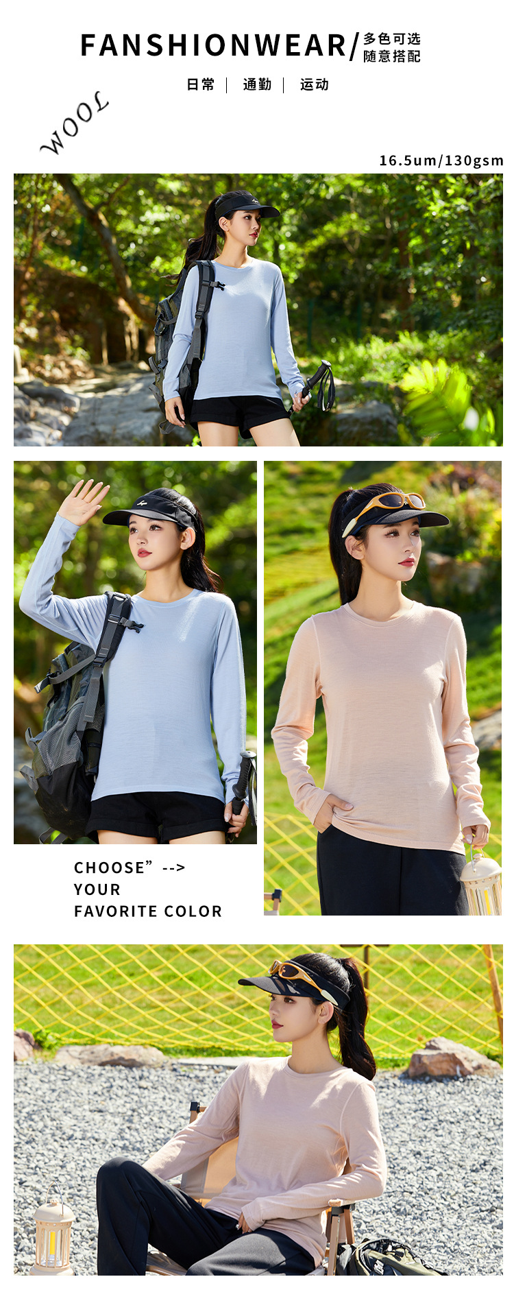 메리노 울 긴팔 티셔츠 여성 야외 속건성 의류 메리노 베이스 레이어 러닝 스포츠 탑 130H07
