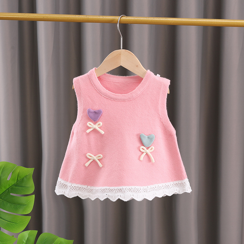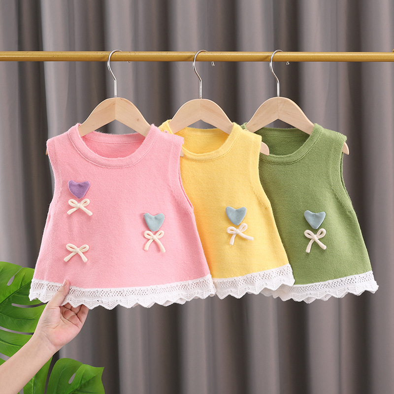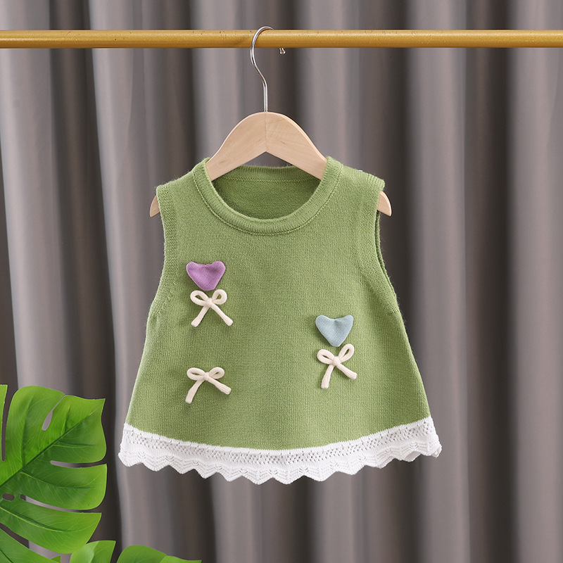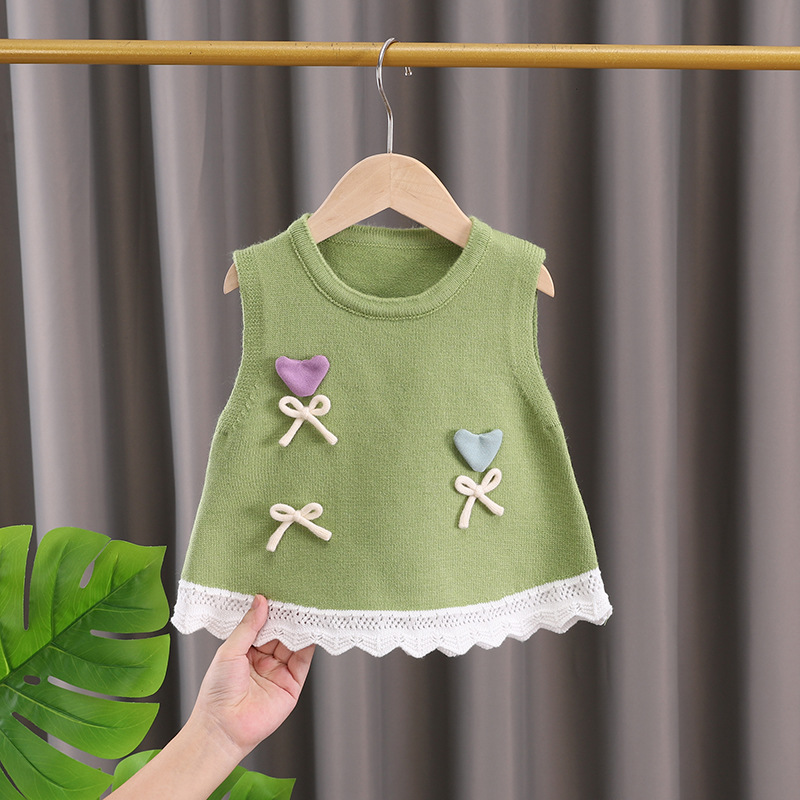어린이 니트 조끼 봄과 가을 새로운 한국어 스타일 다채로운 풀오버 소녀 스웨터 조끼 아기 소녀는 밖에서 착용할 수 있습니다