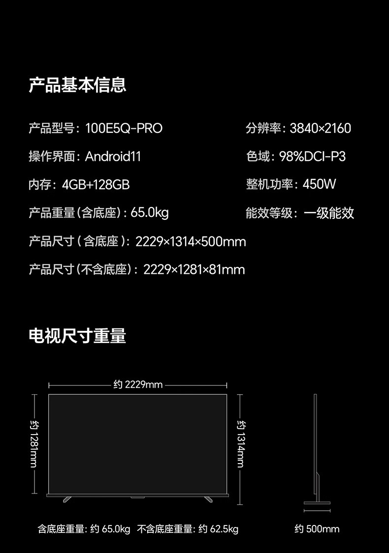 Hisense TV Xiaomo 100inch 슈퍼 화질 레터링 칩 슈퍼 화질 U+MiniLED HD LCD TV
