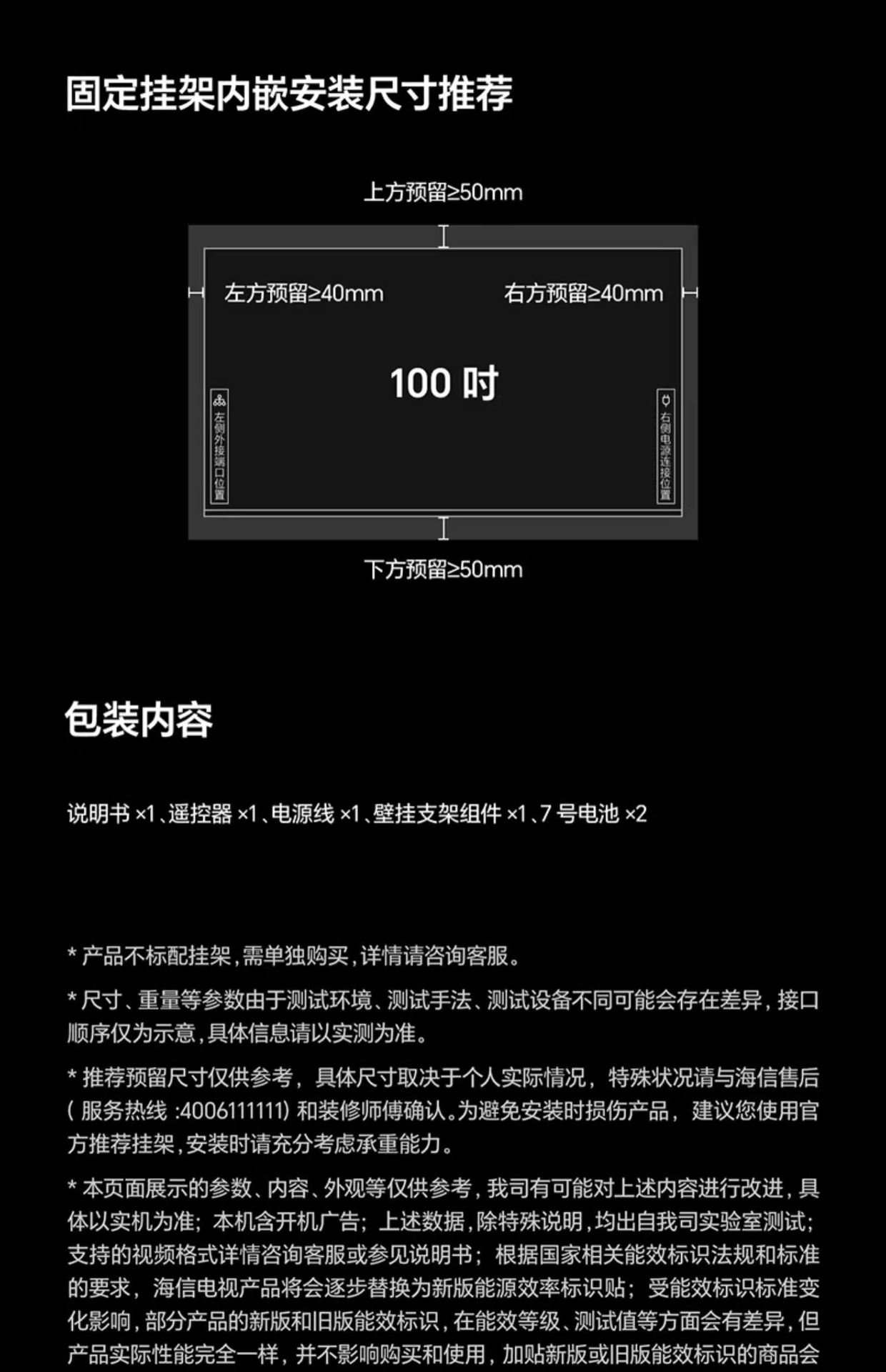 Hisense TV Xiaomo 100inch 슈퍼 화질 레터링 칩 슈퍼 화질 U+MiniLED HD LCD TV스토어 가기