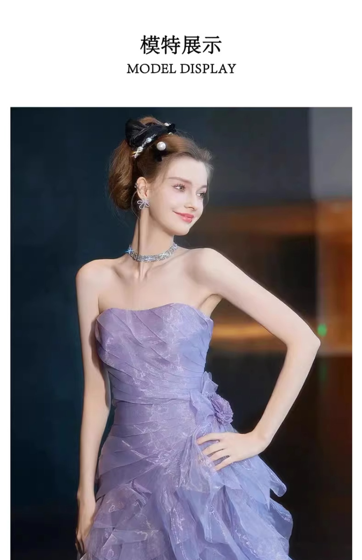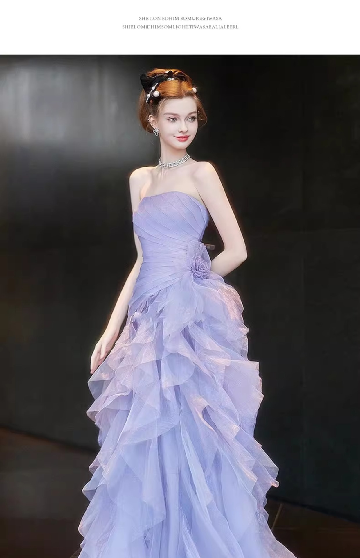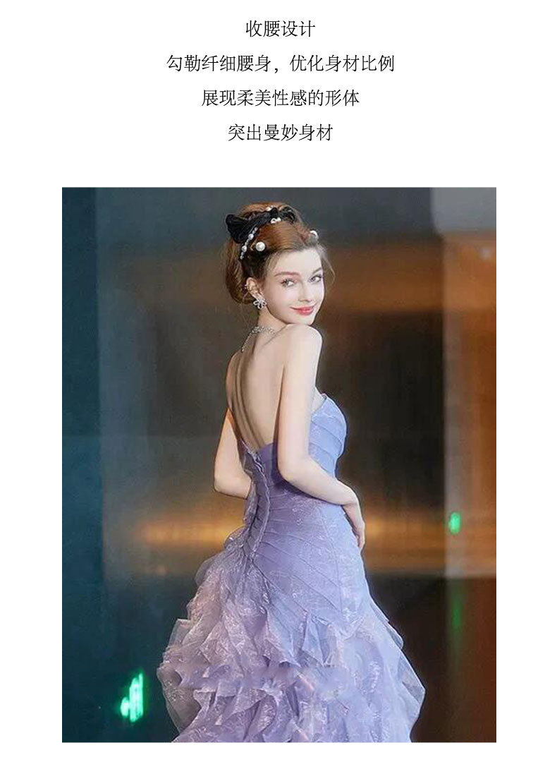 보라색 튜브탑 이브닝 드레스, 요정 같은 가벼운 럭셔리, 약혼 럭셔리, 도망자 공주 드레스, 무대 모델 캣워크 드레스스토어 가기