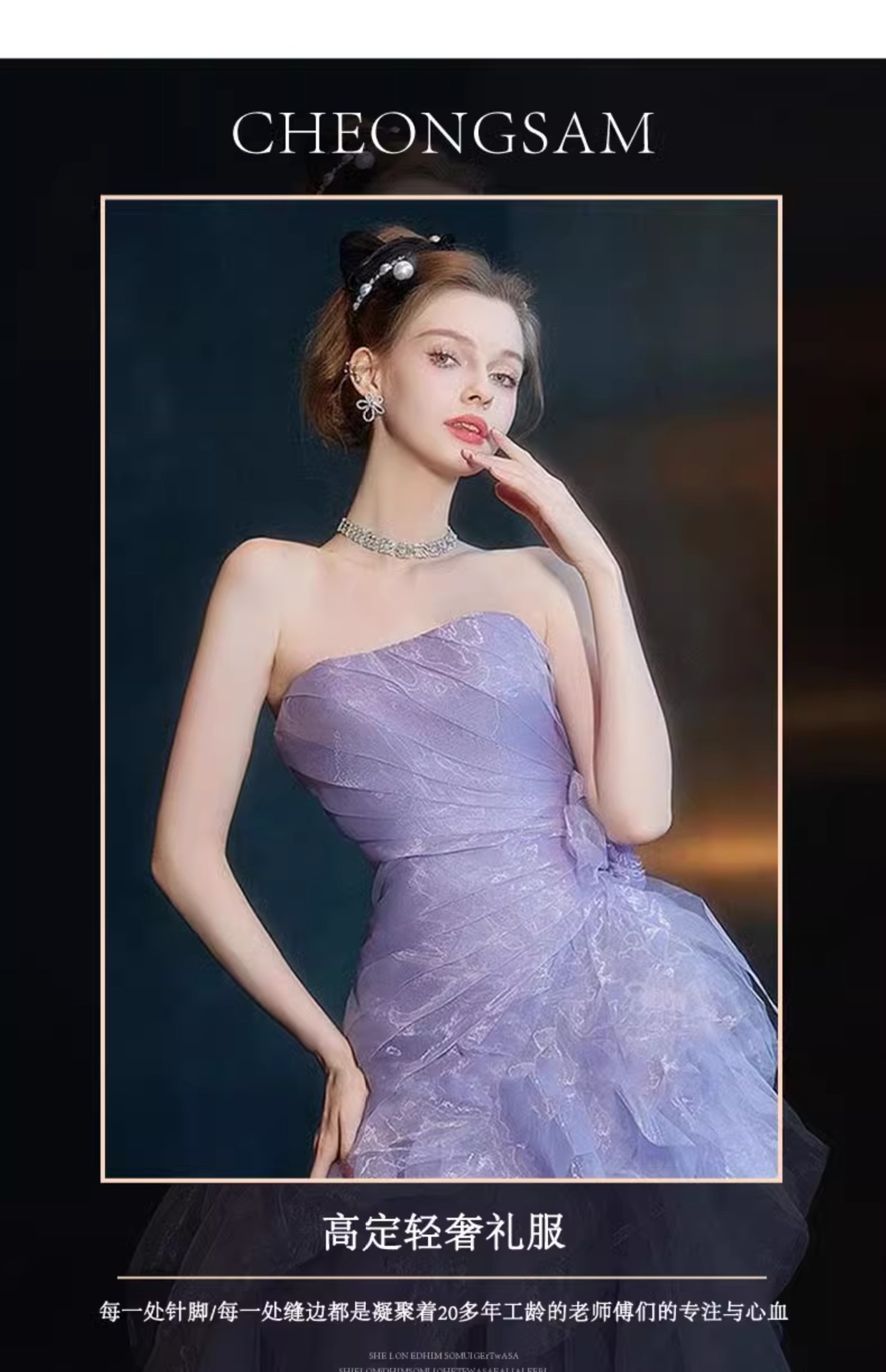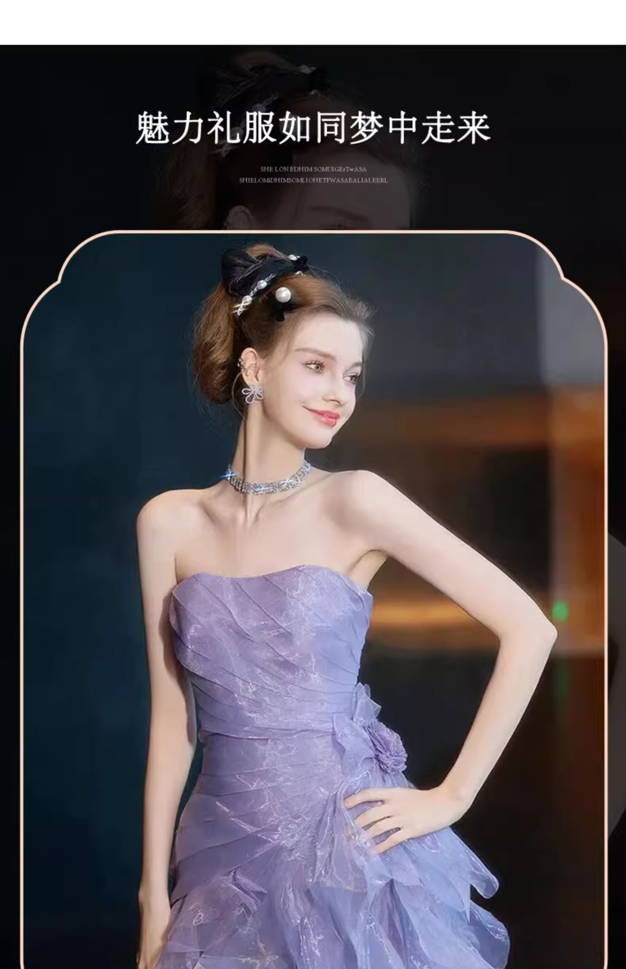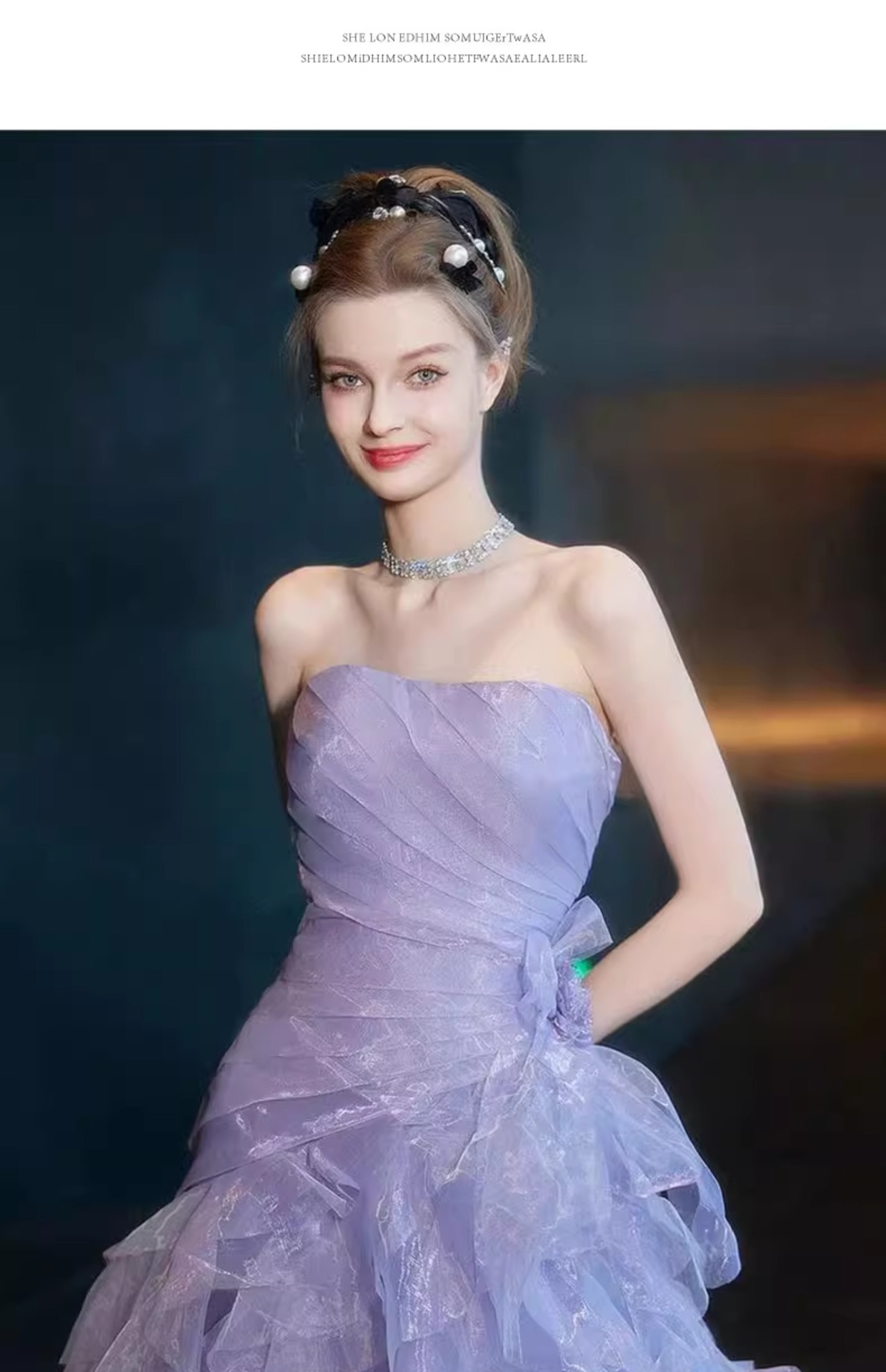 보라색 튜브탑 이브닝 드레스, 요정 같은 가벼운 럭셔리, 약혼 럭셔리, 도망자 공주 드레스, 무대 모델 캣워크 드레스스토어 가기