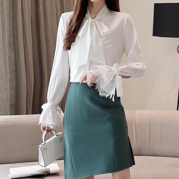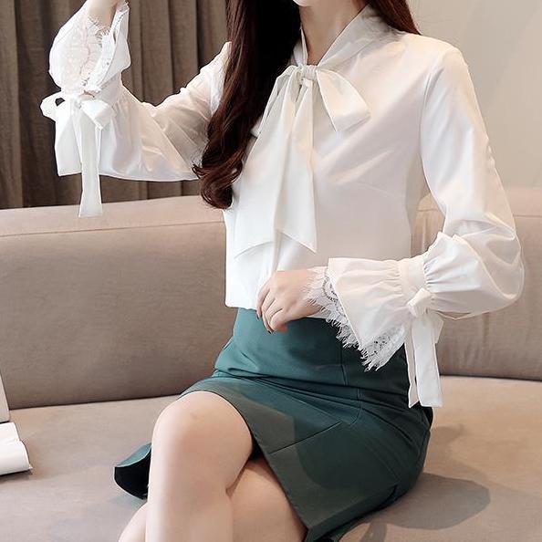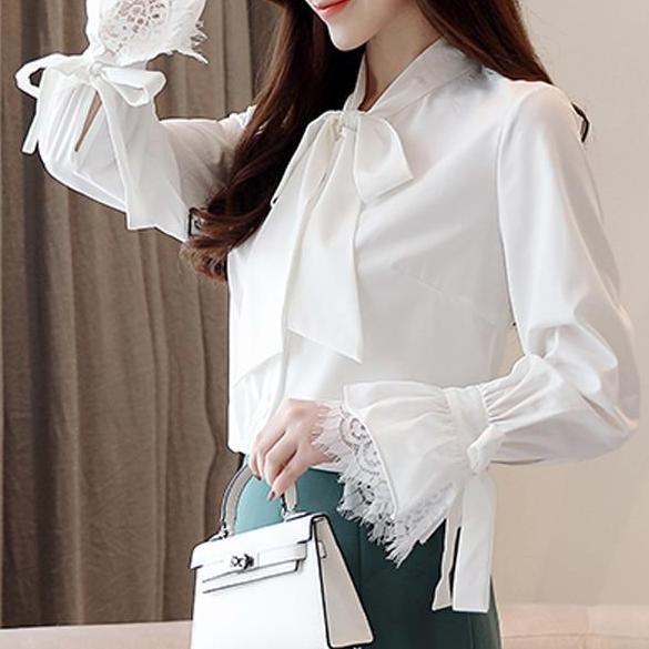 2025년 크로스보더 새로운 패션 화이트 셔츠 디자인 틈새 한국 스타일 서양식 리본 달콤한 긴팔 셔츠스토어 가기