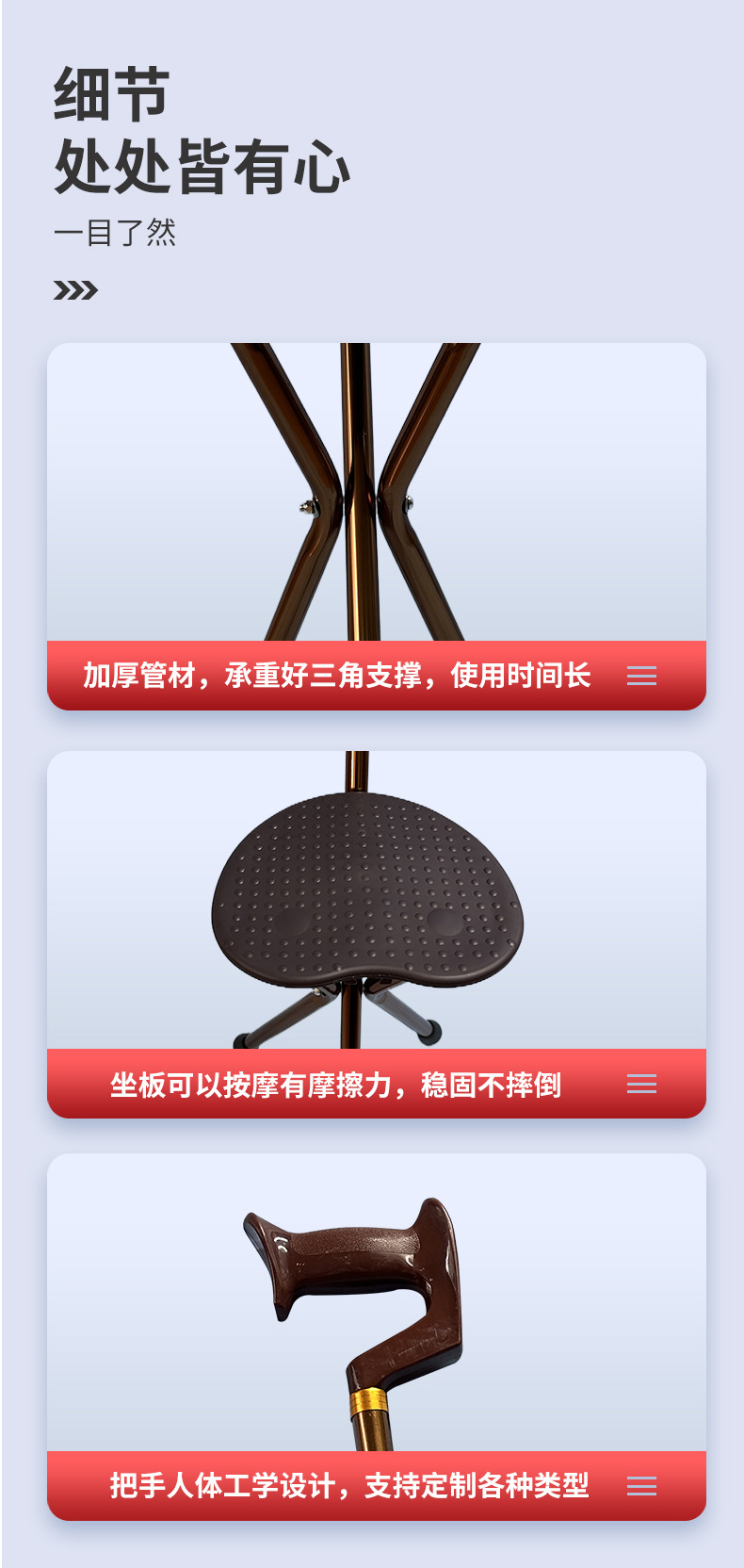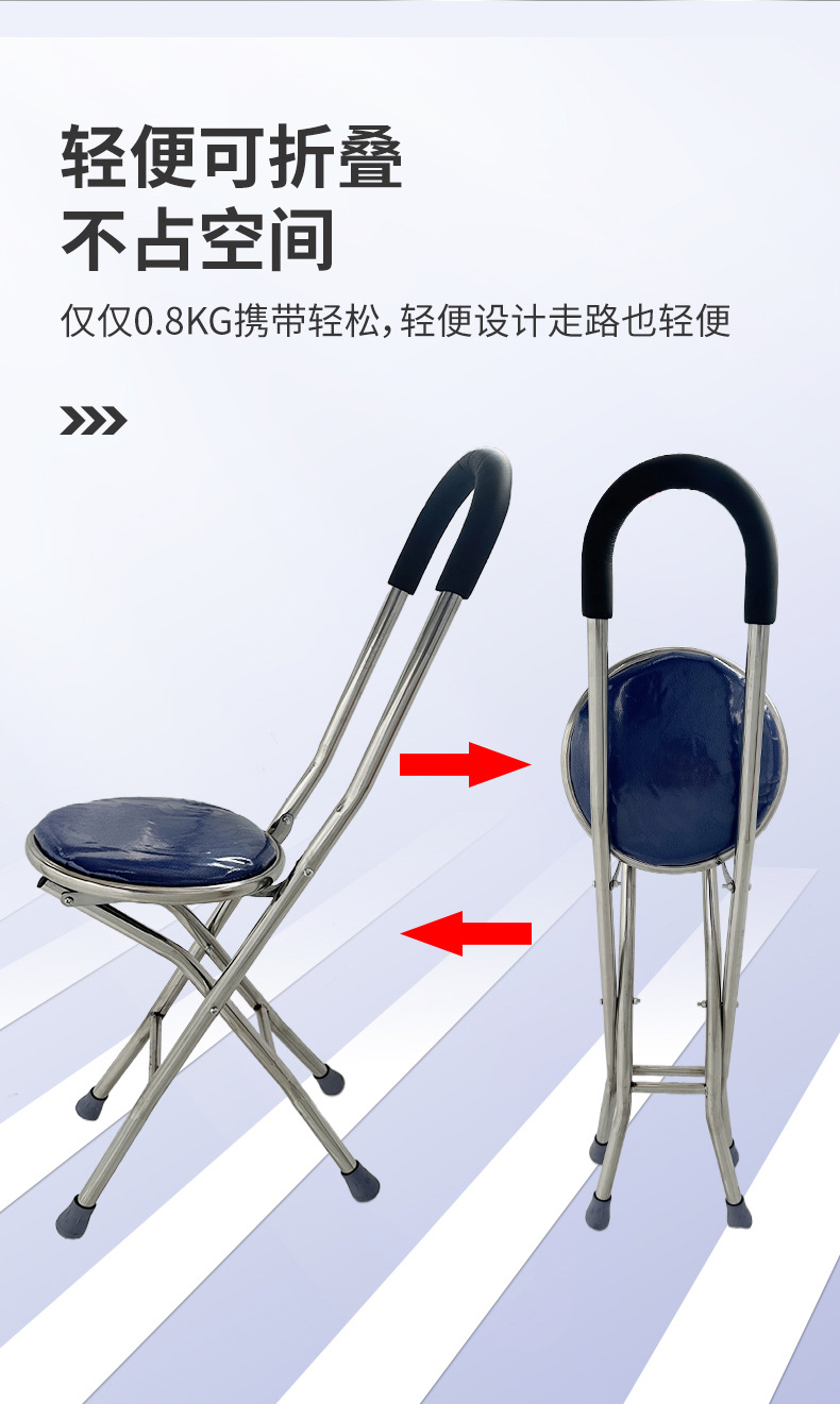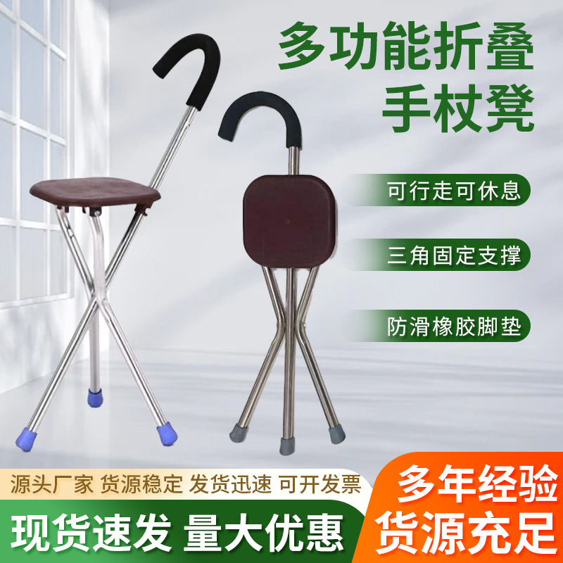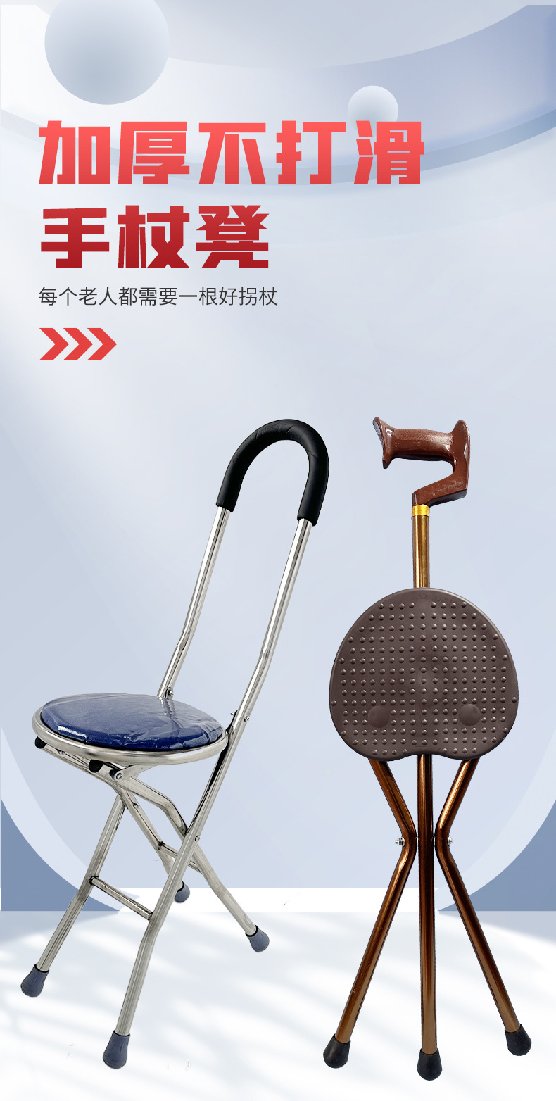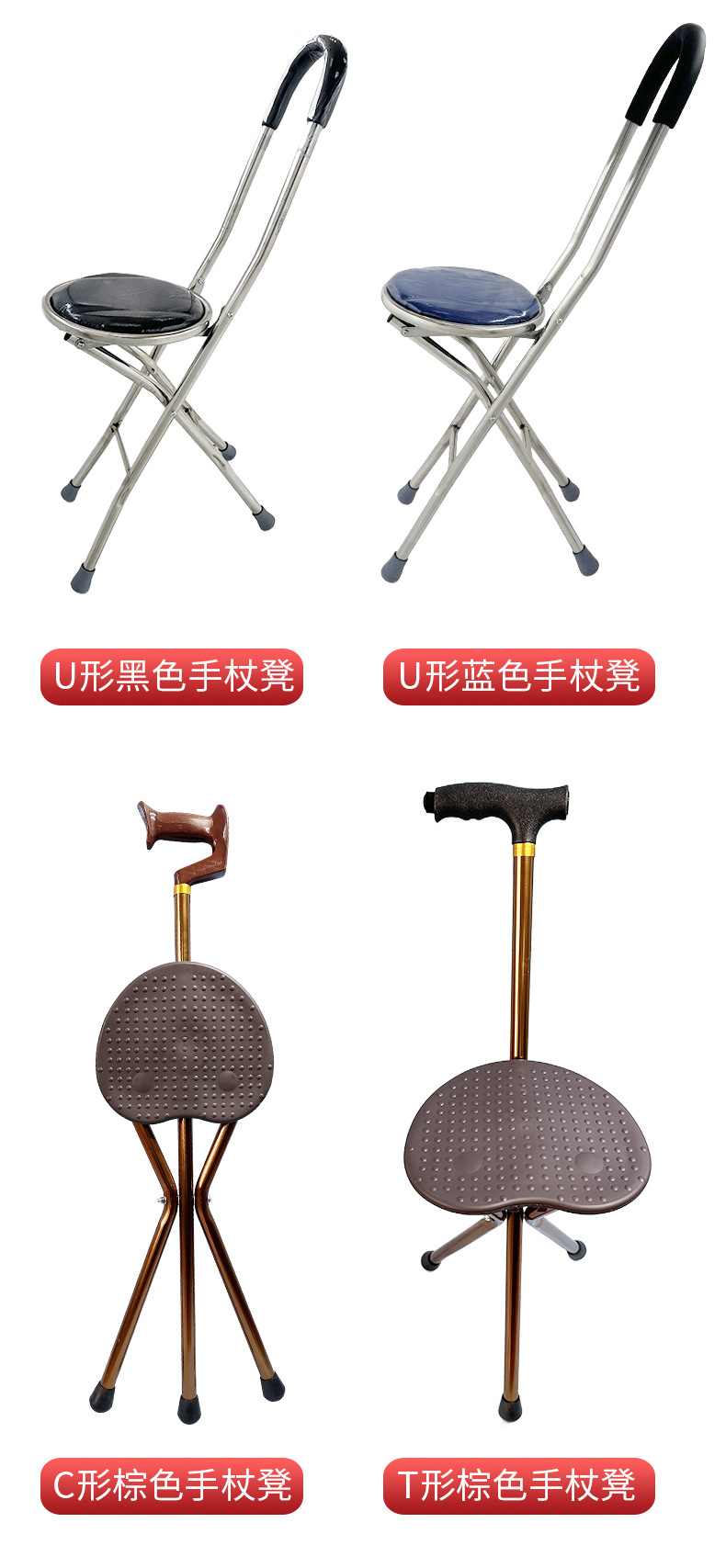 노인을 위한 접이식 삼각대 지팡이 의자, 높이 조절 가능한 지팡이, 휴대용 등산 지팡이 휴식 의자스토어 가기