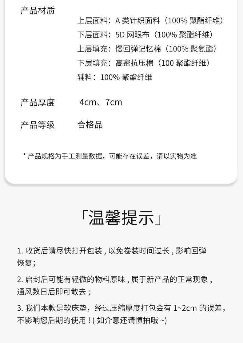 • A급 라텍스 + 고탄력 메모리폼, 흰색, 두께 약 7cm