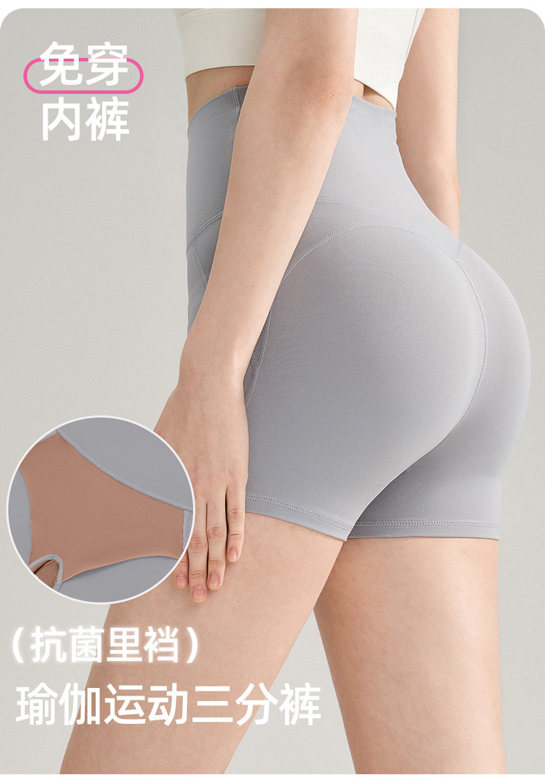 팬티가 없는 요가팬츠, 하이웨이스트 통기성 여성 여름용 얇은 필라테스 스포츠 반바지, 특수 피트니스 3점팬츠스토어 가기