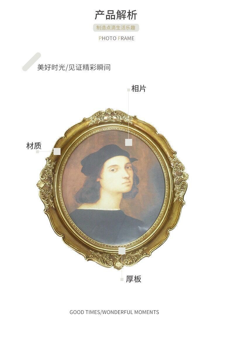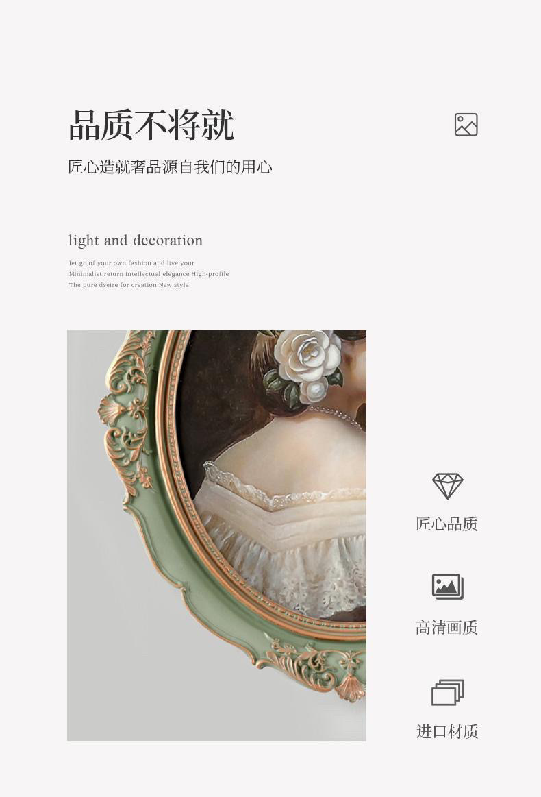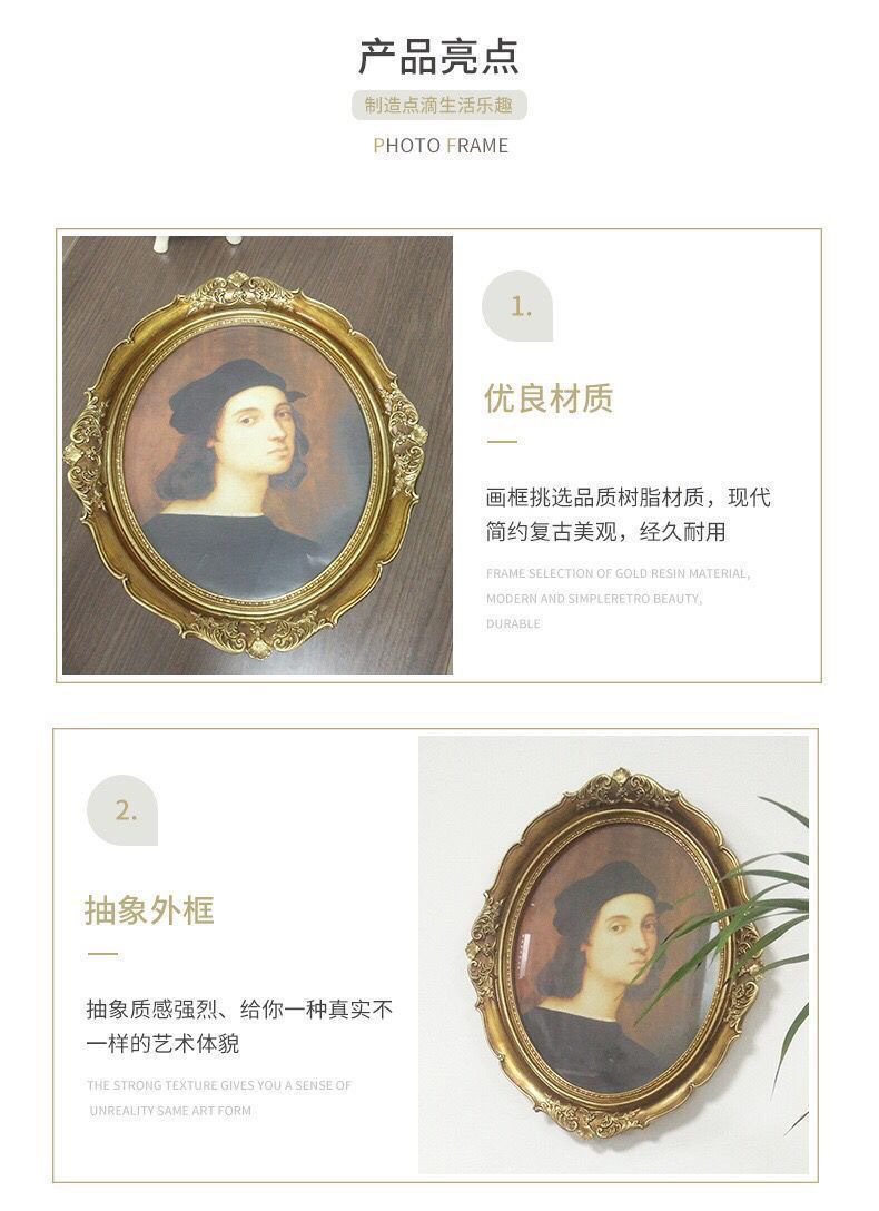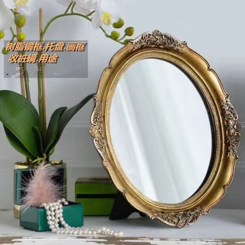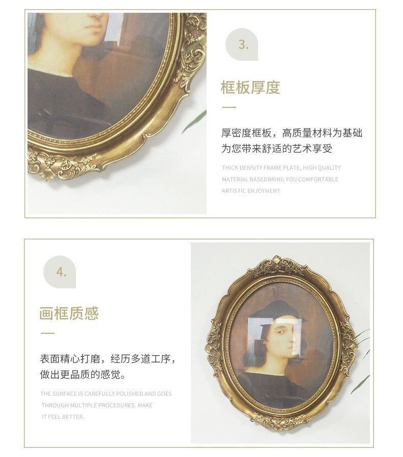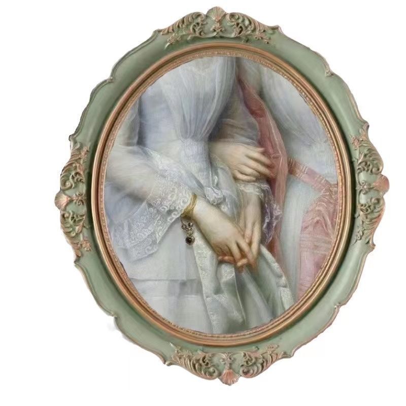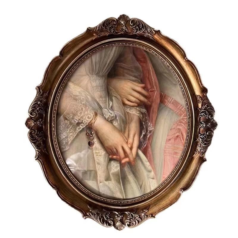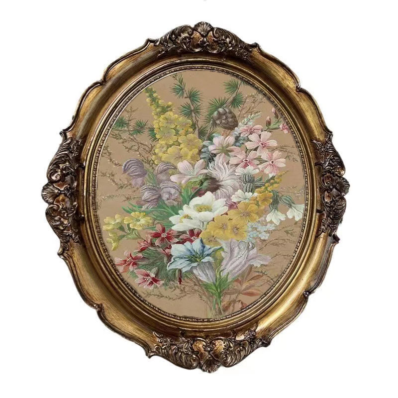 복고풍 사진 프레임 유럽 스타일의 가벼운 럭셔리 틈새 스타일 꽃 거울은 벽에 걸 수 있습니다 타원형 클래식 유화 프레임 작은 장식품스토어 가기