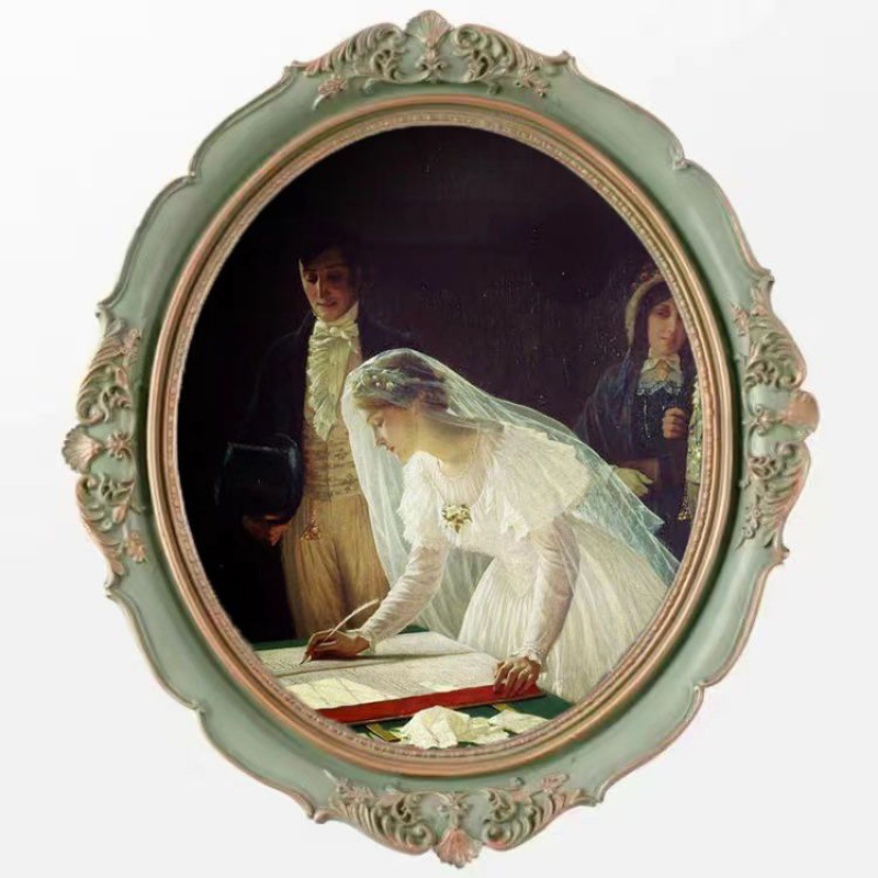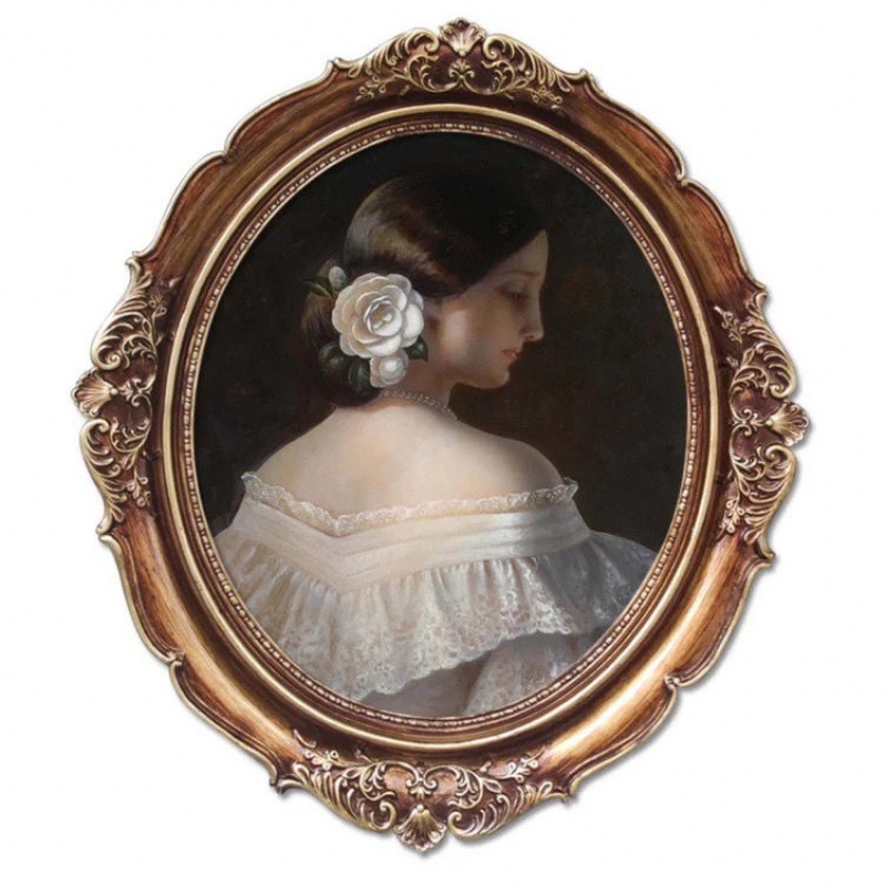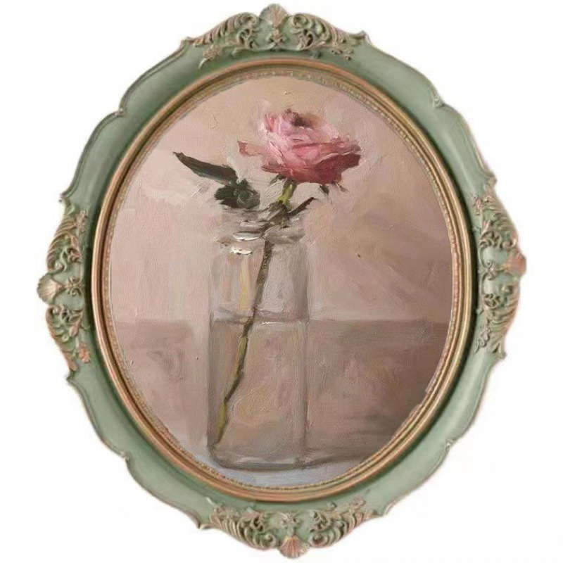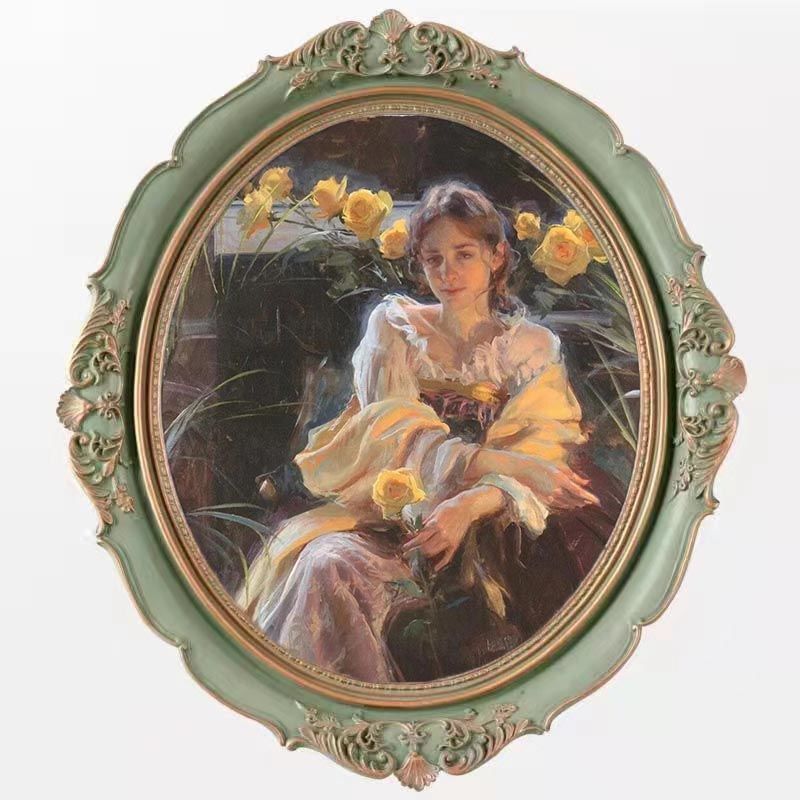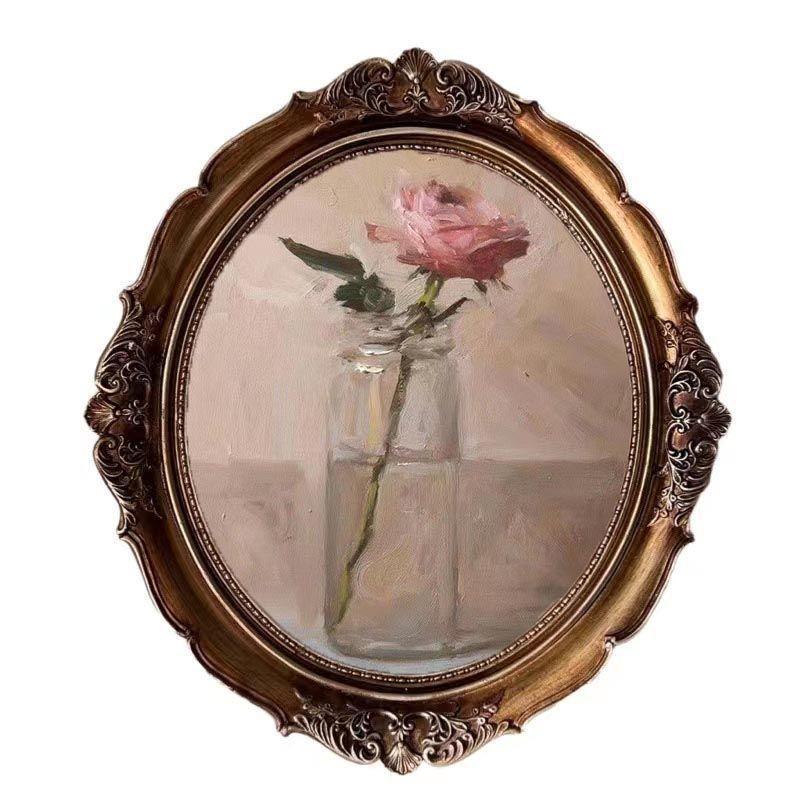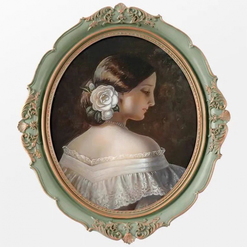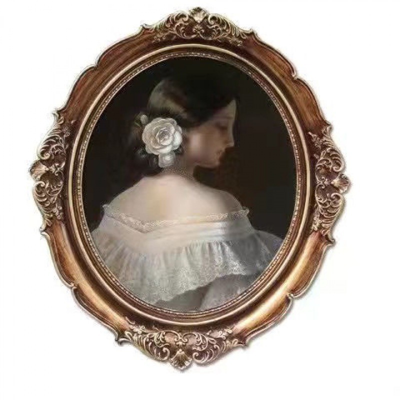 복고풍 사진 프레임 유럽 스타일의 가벼운 럭셔리 틈새 스타일 꽃 거울은 벽에 걸 수 있습니다 타원형 클래식 유화 프레임 작은 장식품