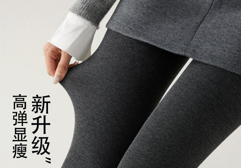 가을 겨울 여성용 캐시미어 레깅스, 기모 및 두꺼운 스트라이프 디자인, 약간의 압박감으로 슬림한 효과, 회색 세로 스트라이프 면 팬티스타킹스토어 가기