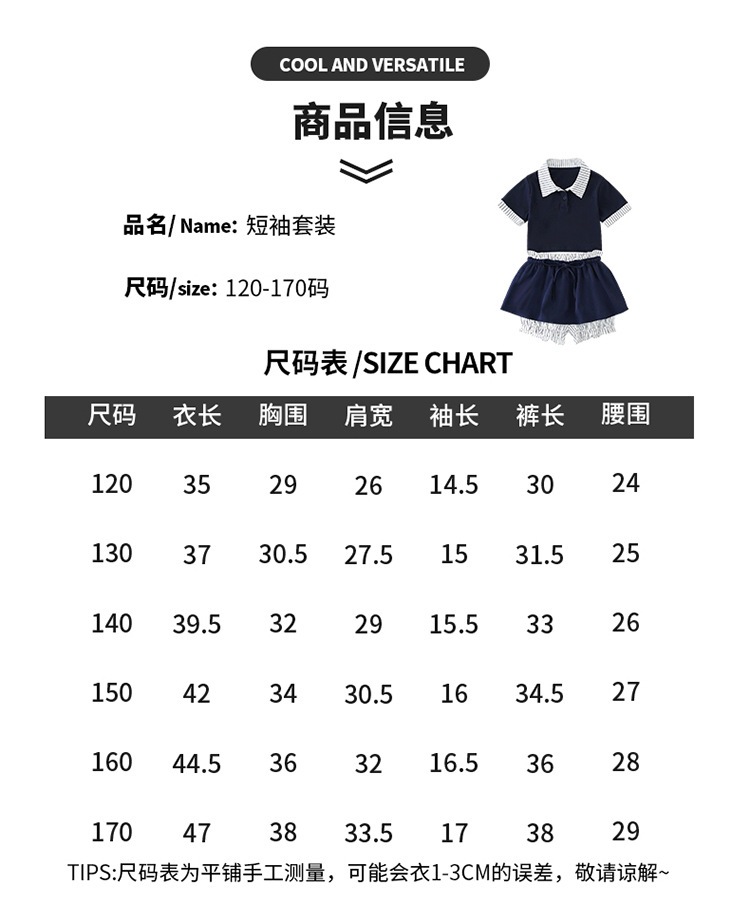 여자 폴로 셔츠와 치마바지 정장 여름 옷 2025 새로운 여름 스타일 아동복 아동용 가짜 투피스 반팔 치마바지스토어 가기