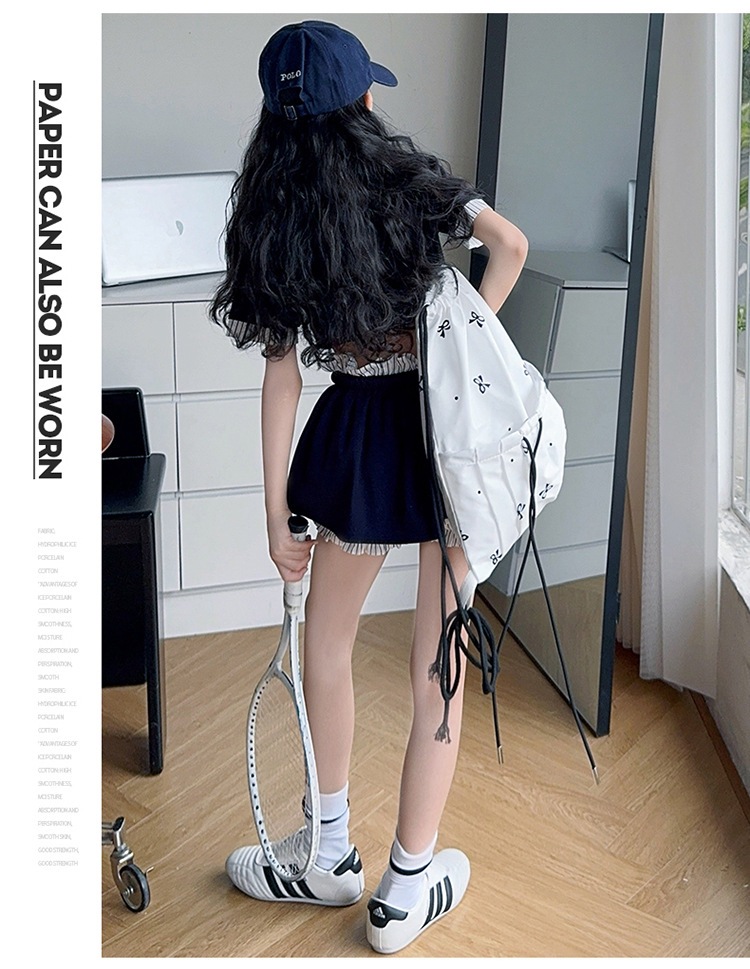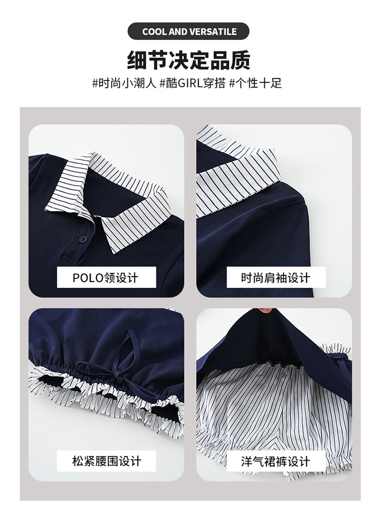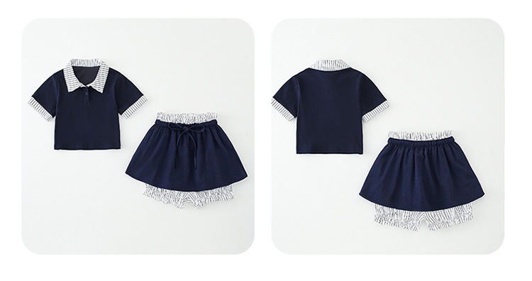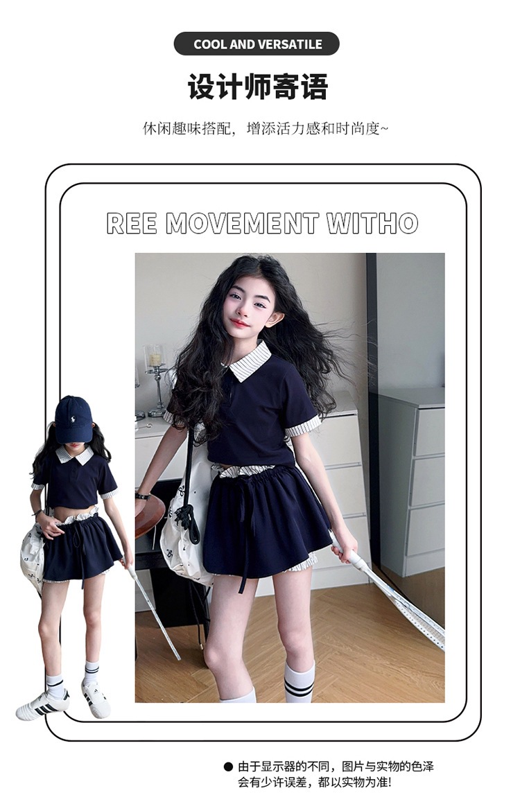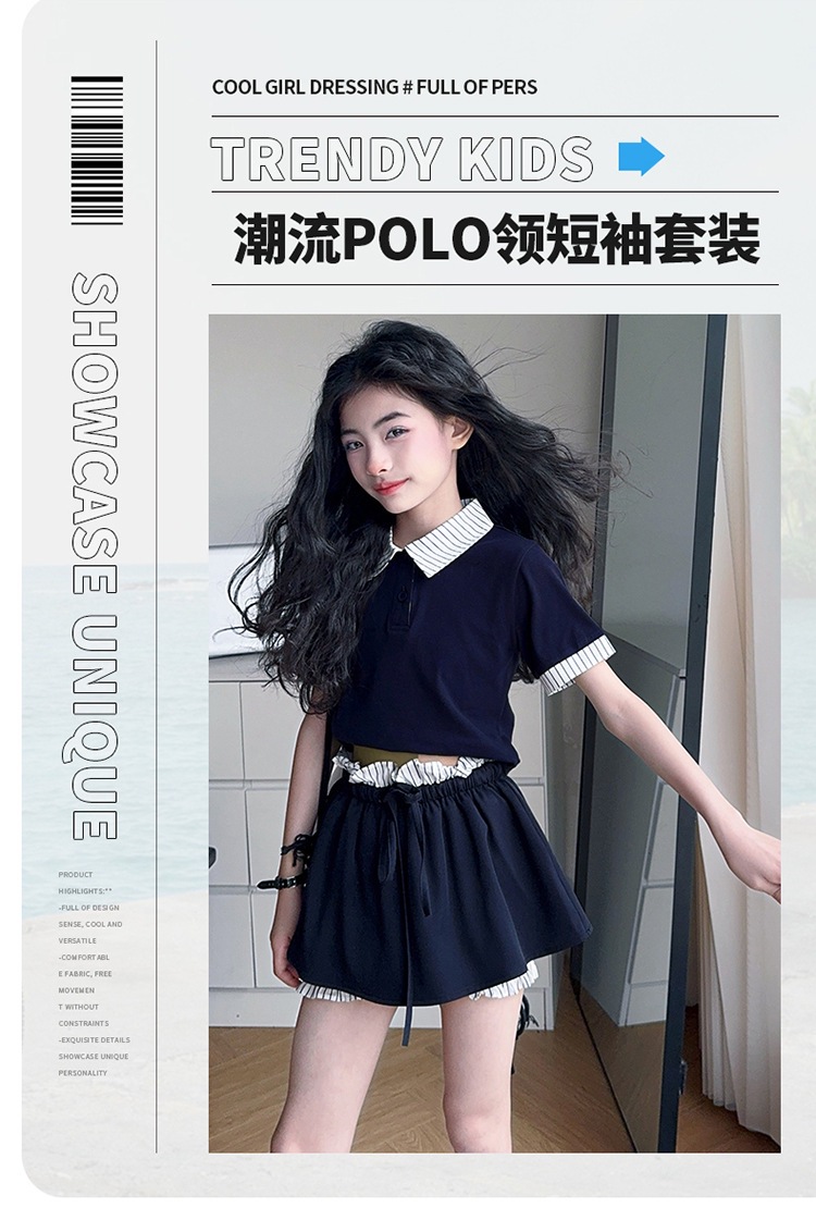 여자 폴로 셔츠와 치마바지 정장 여름 옷 2025 새로운 여름 스타일 아동복 아동용 가짜 투피스 반팔 치마바지
