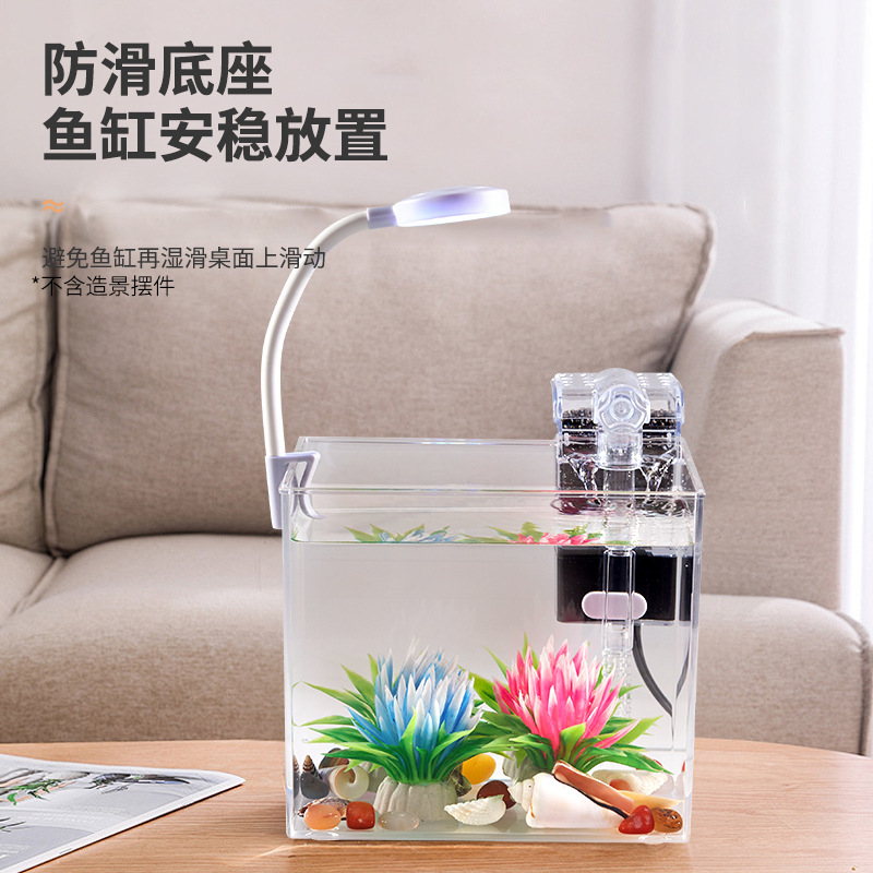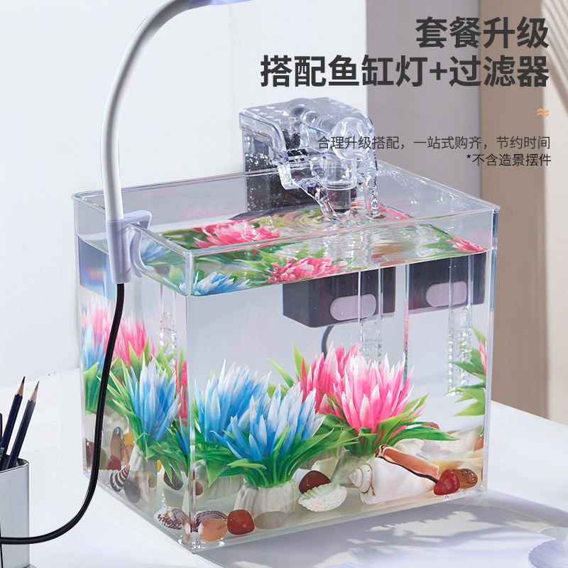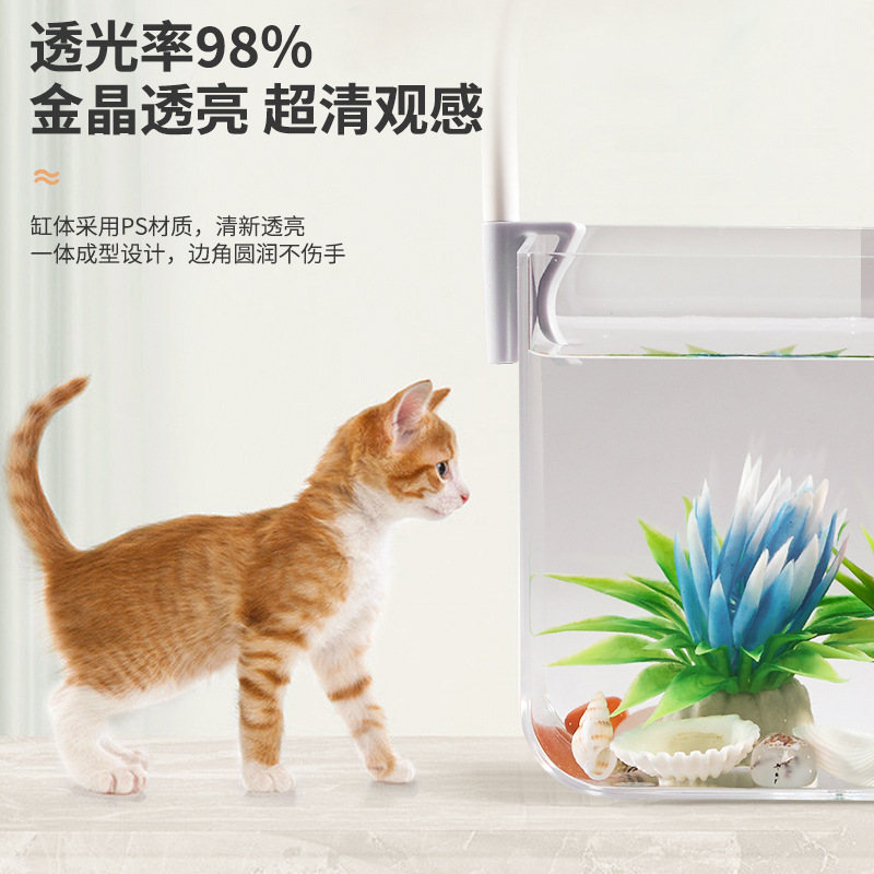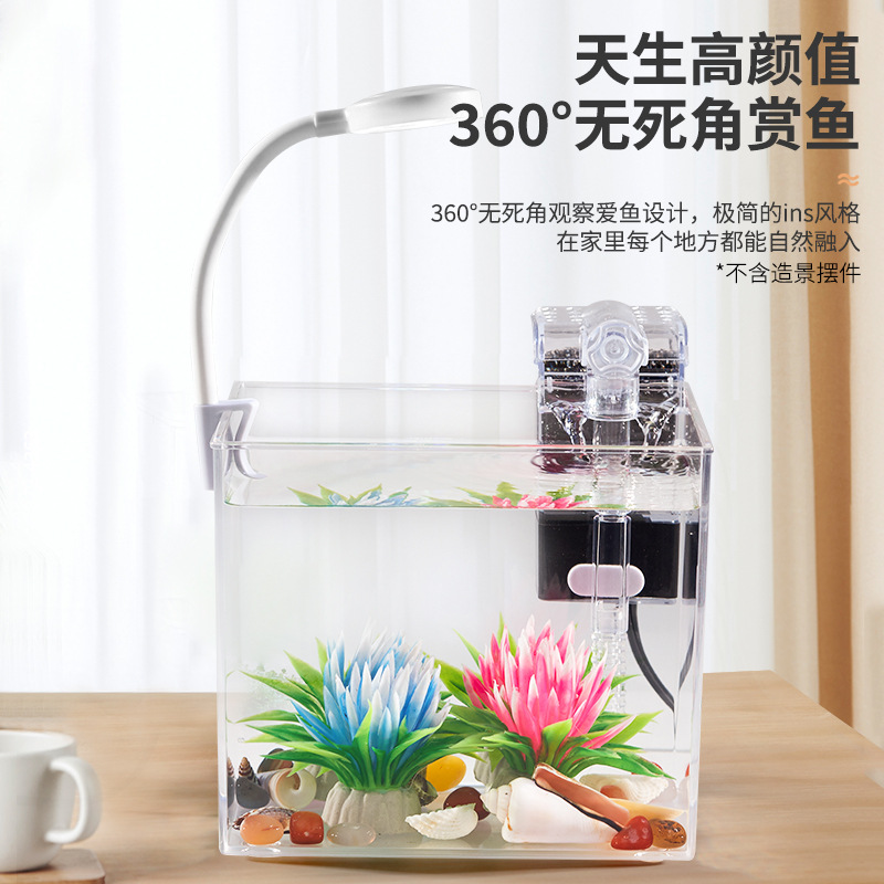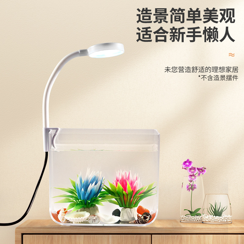 • M 사이즈 데스크탑 수조 + 3w 클립 라이트 + USB 소형 플러그인