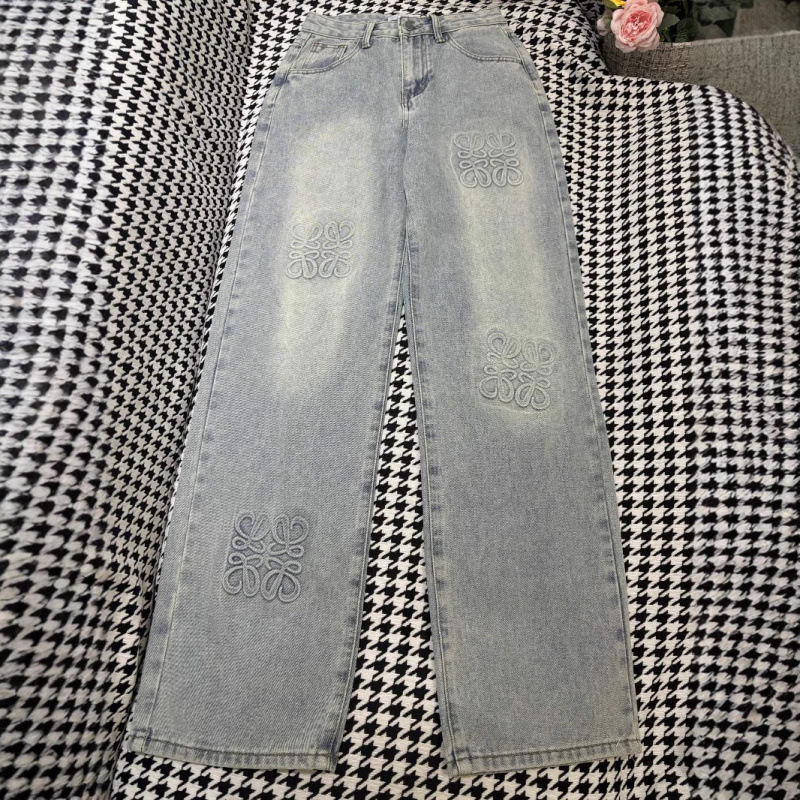 25 봄 새로운 패션 접착제 대형 로고 스틸 스탬프 스트레이트 청바지 바지 여성