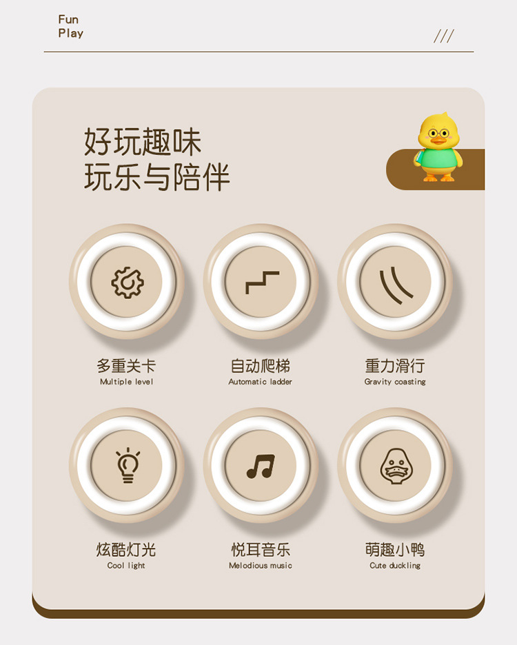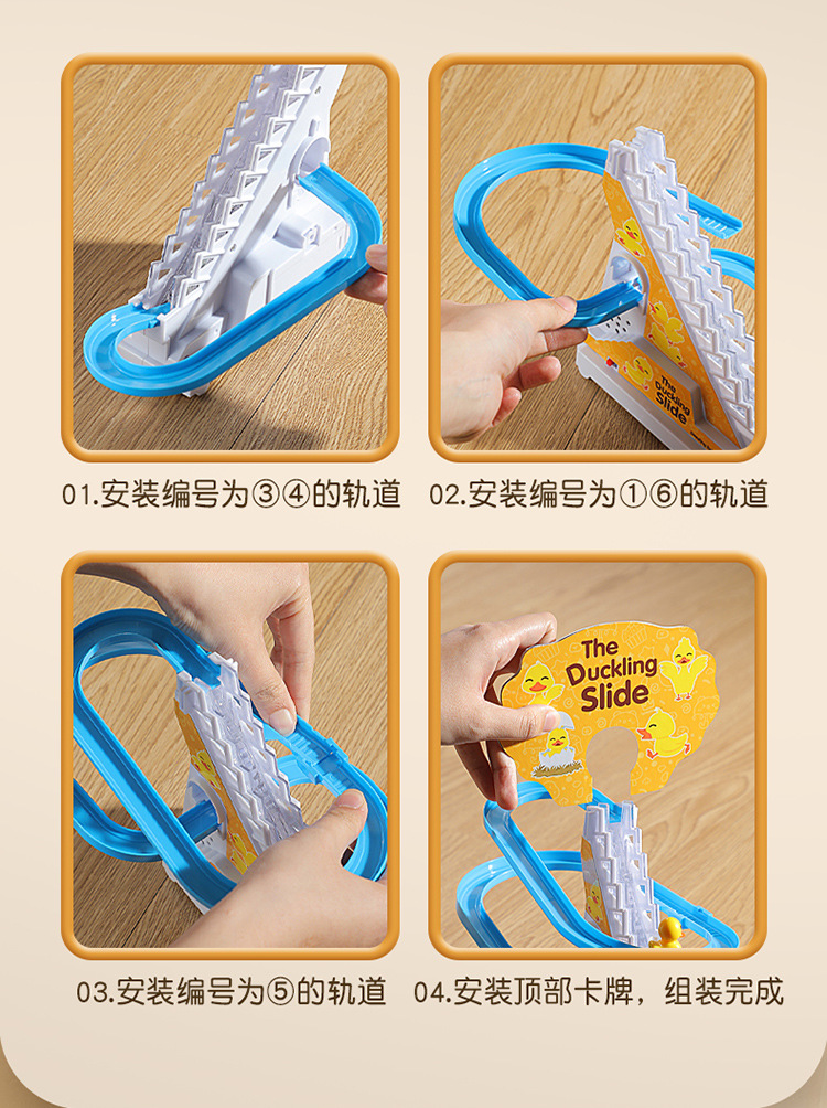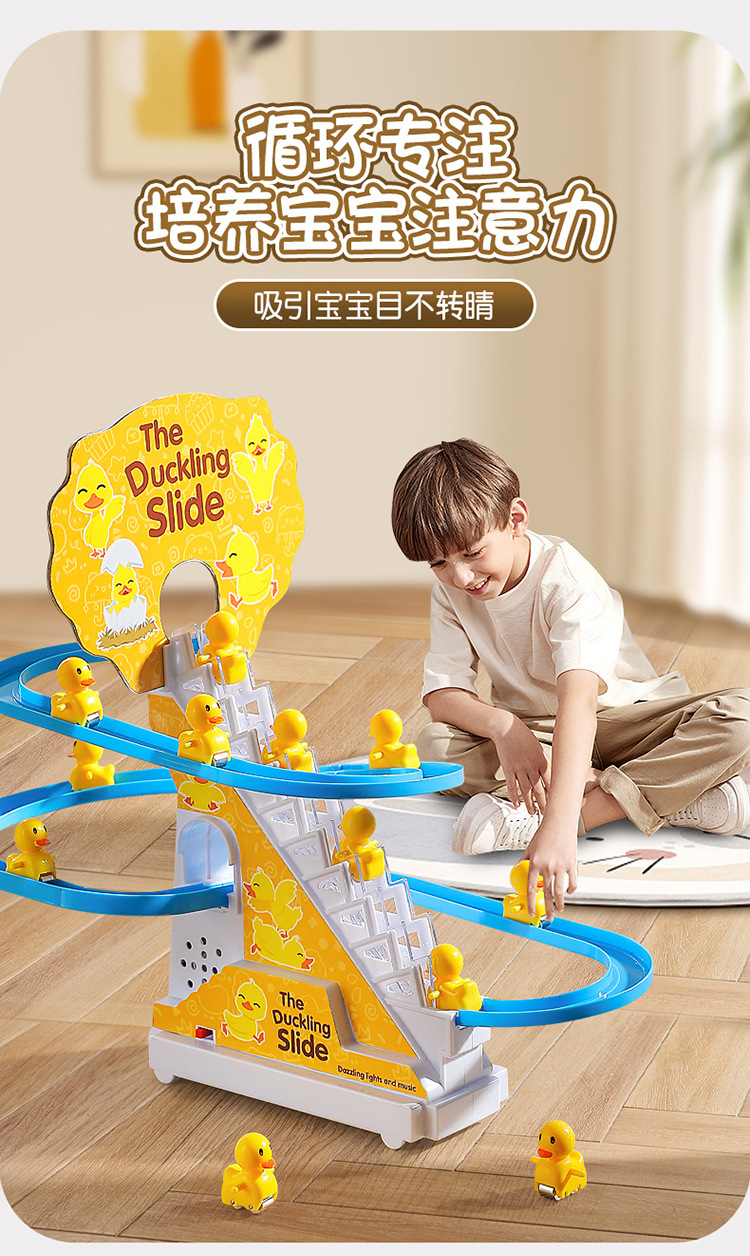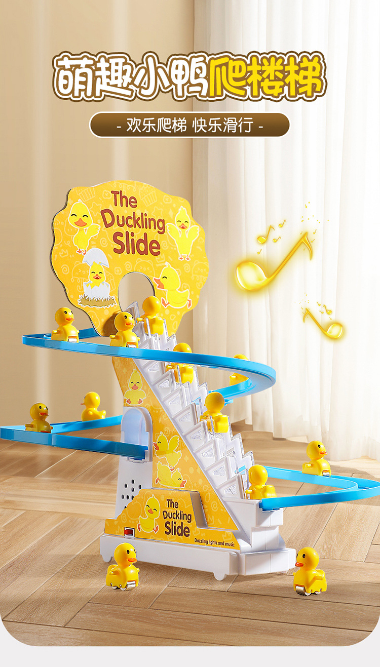 Douyin 작은 오리는 자동으로 계단을 오릅니다. 어린이 교육 전기 트랙 작은 노란색 오리 슬라이드 장난감 국경 간 도매