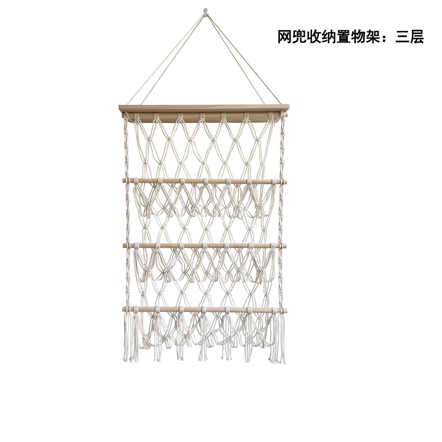 INS 스타일 장난감 보관 메쉬 포켓 보관 랙 간단한 장식 보헤미안 짠 보관 랙 다층 메쉬 포켓