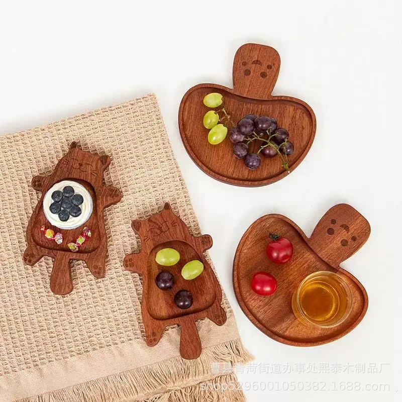 나무 나무 트레이 가정용 나무 만화 동물 곰 저녁 식사 접시 거실 단단한 나무 빵 장식품 다기능 트레이