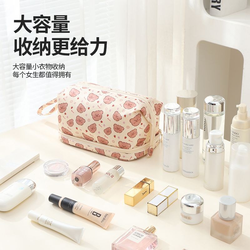 패션 세면 용품 가방 한국 스타일 대용량 파티션 립스틱 보관 가방 여행 귀여운 더블 레이어 화장품 가방