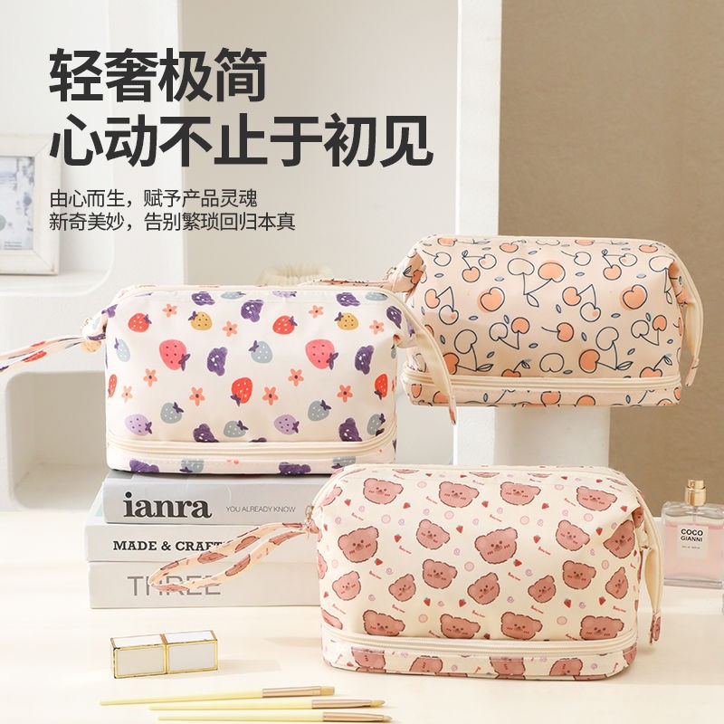 패션 세면 용품 가방 한국 스타일 대용량 파티션 립스틱 보관 가방 여행 귀여운 더블 레이어 화장품 가방스토어 가기