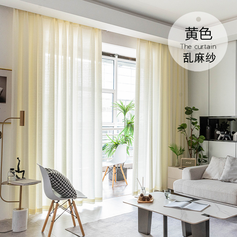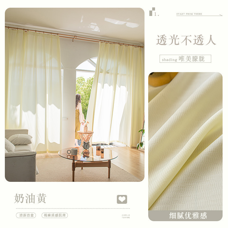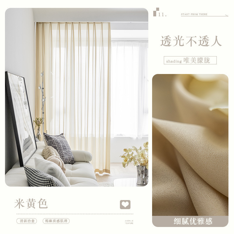 반투명 불침투성 커튼 거즈 커튼 흰색 두꺼운 창 스크린 완제품 침실 파티션 플로팅 창 발코니 노란색 영광 기타 롤스토어 가기