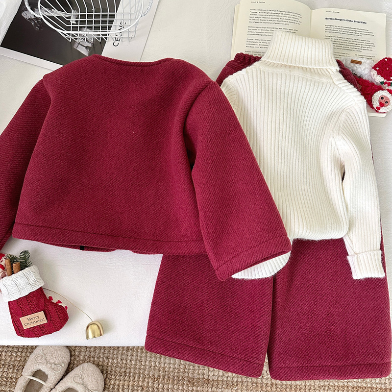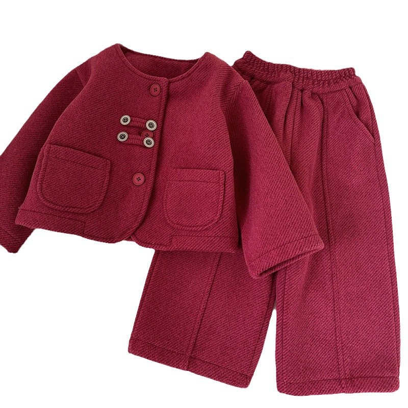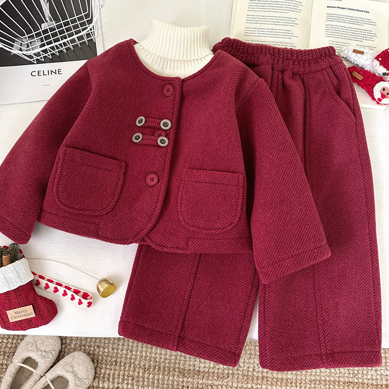 여아 양털 탑 정장 겨울 2025 새로운 한국 스타일 작은 향기 스타일 두꺼운 재킷과 바지 투피스 트렌디 세트