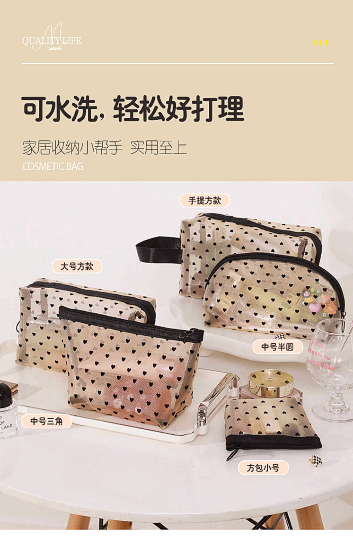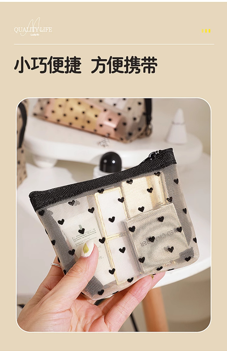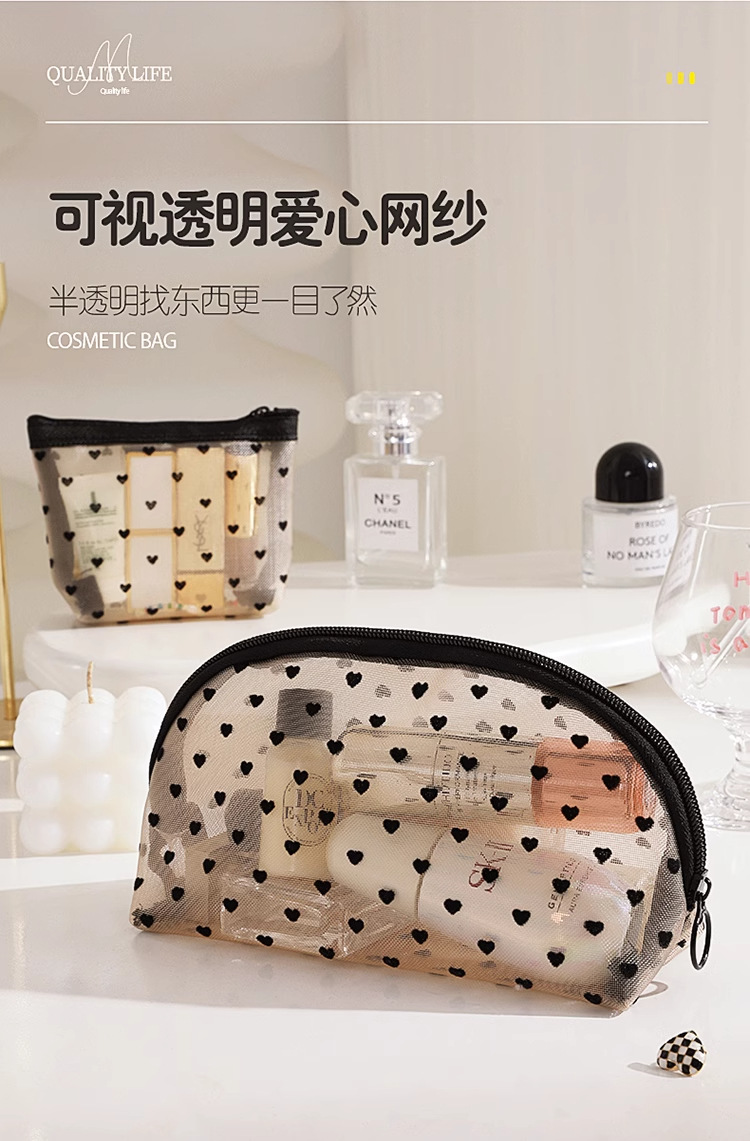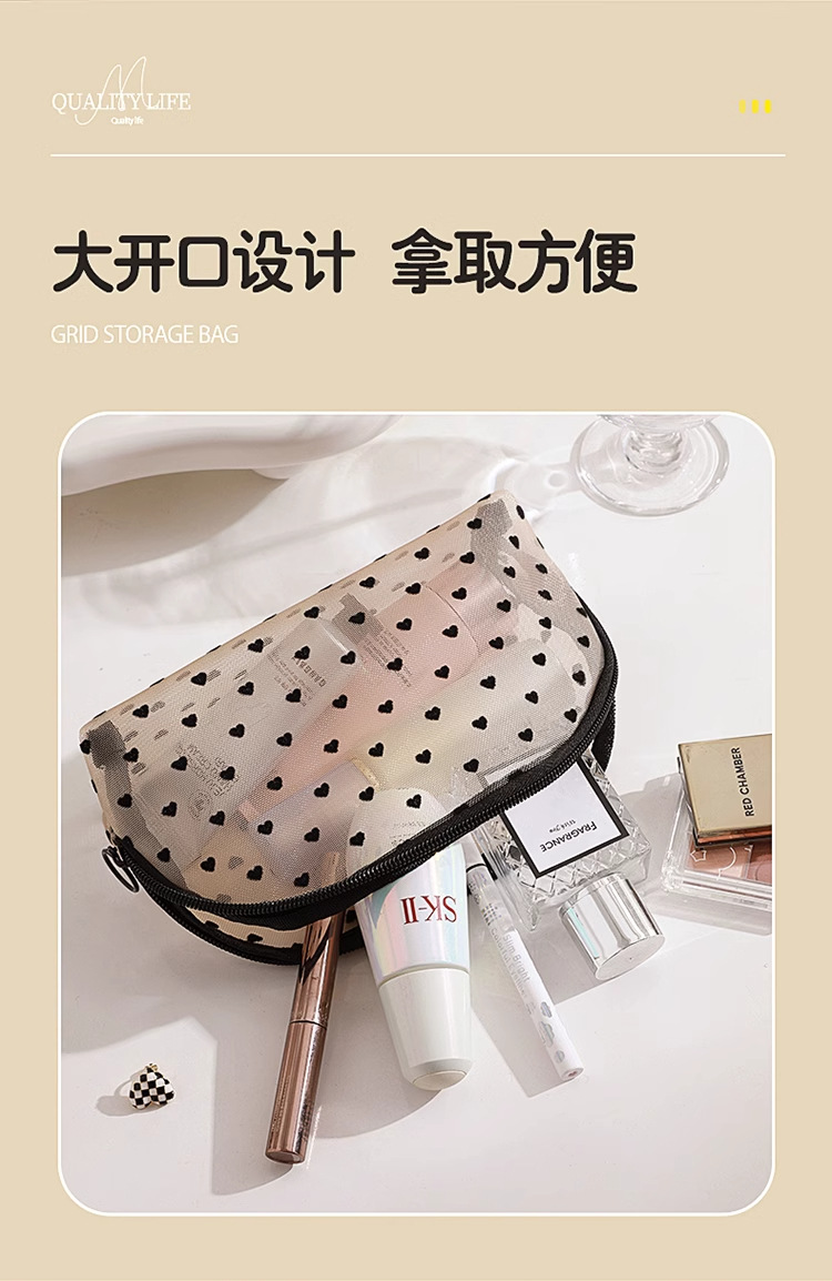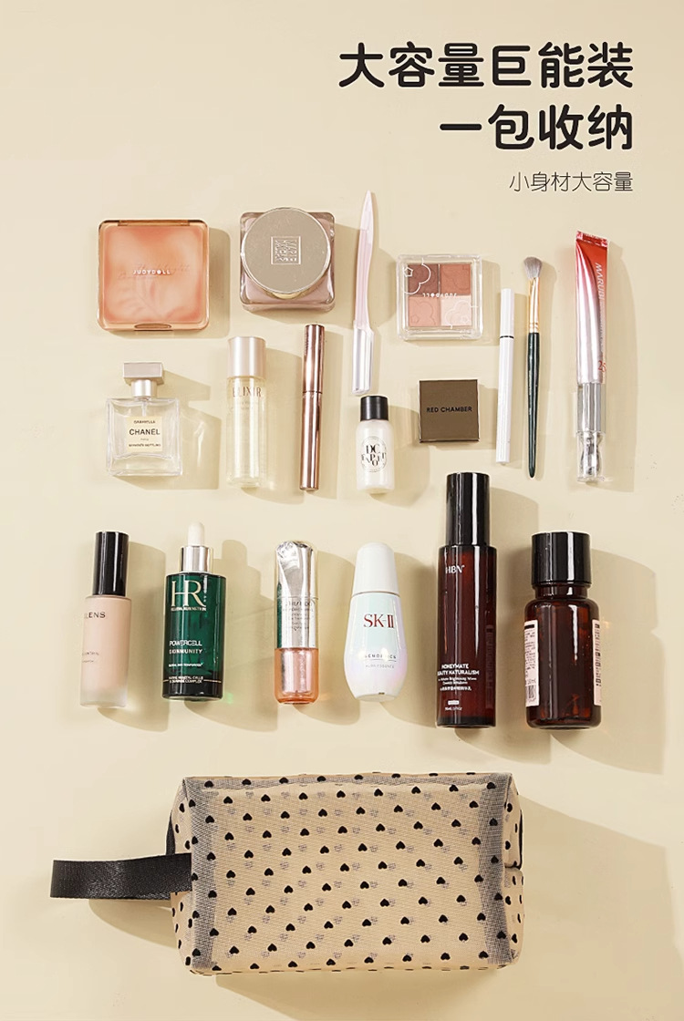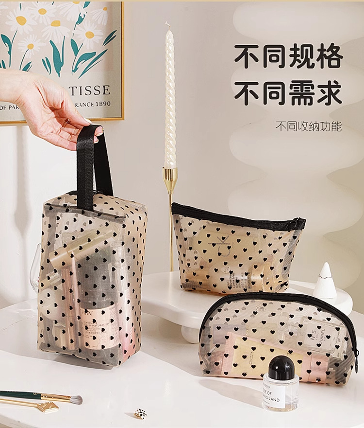 Ins 메쉬 화장품 가방 러브 휴대용 립스틱 메이크업 가방 대용량 여행용 수납 확대 세면 용품 가방스토어 가기