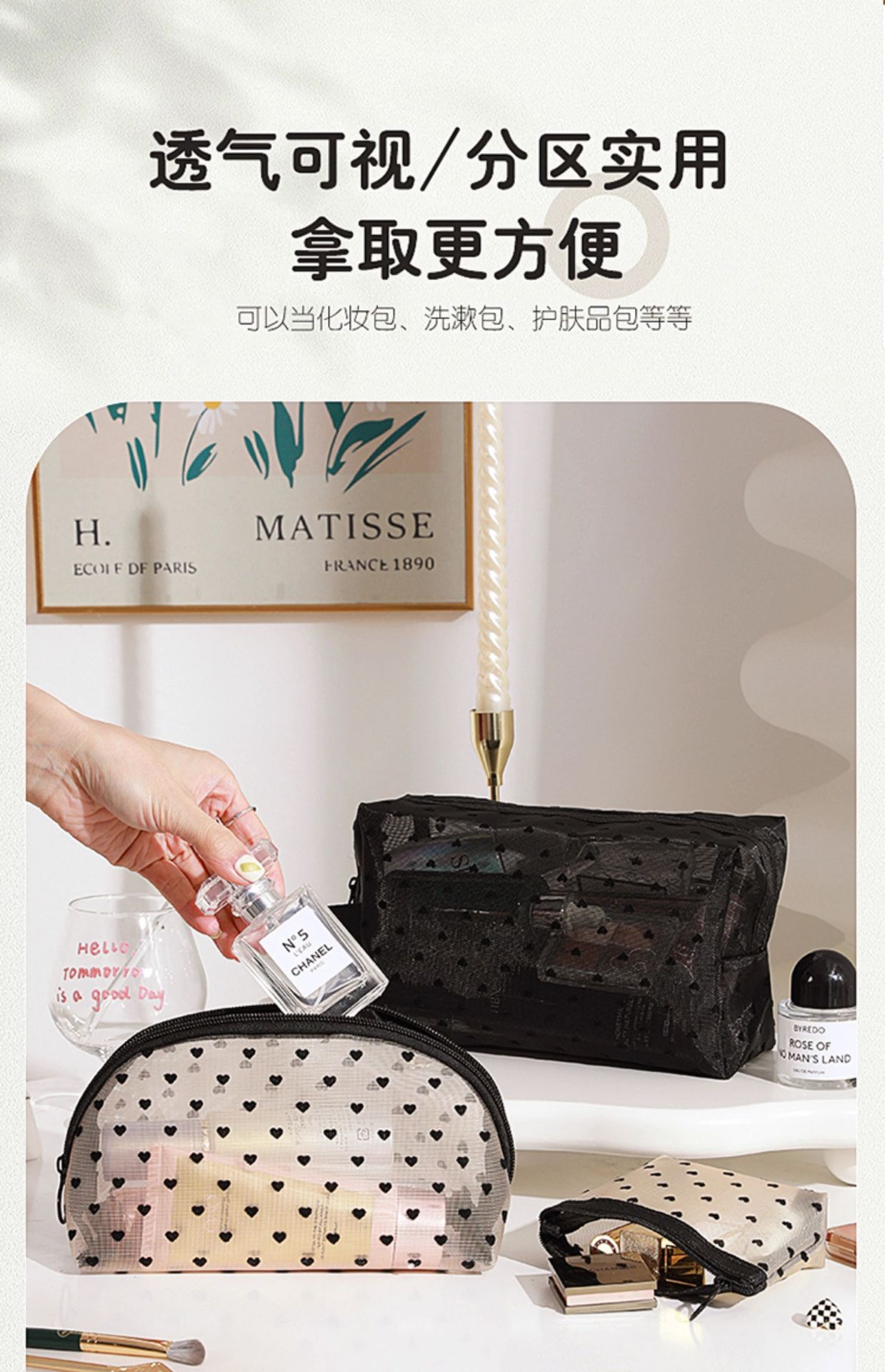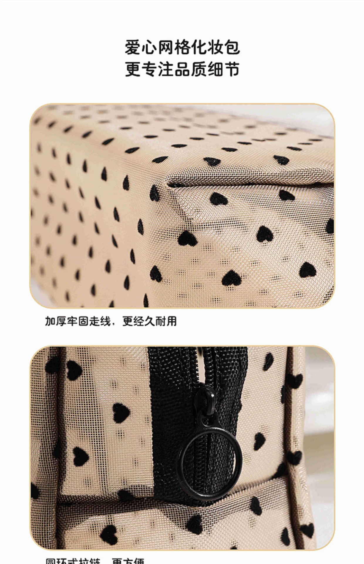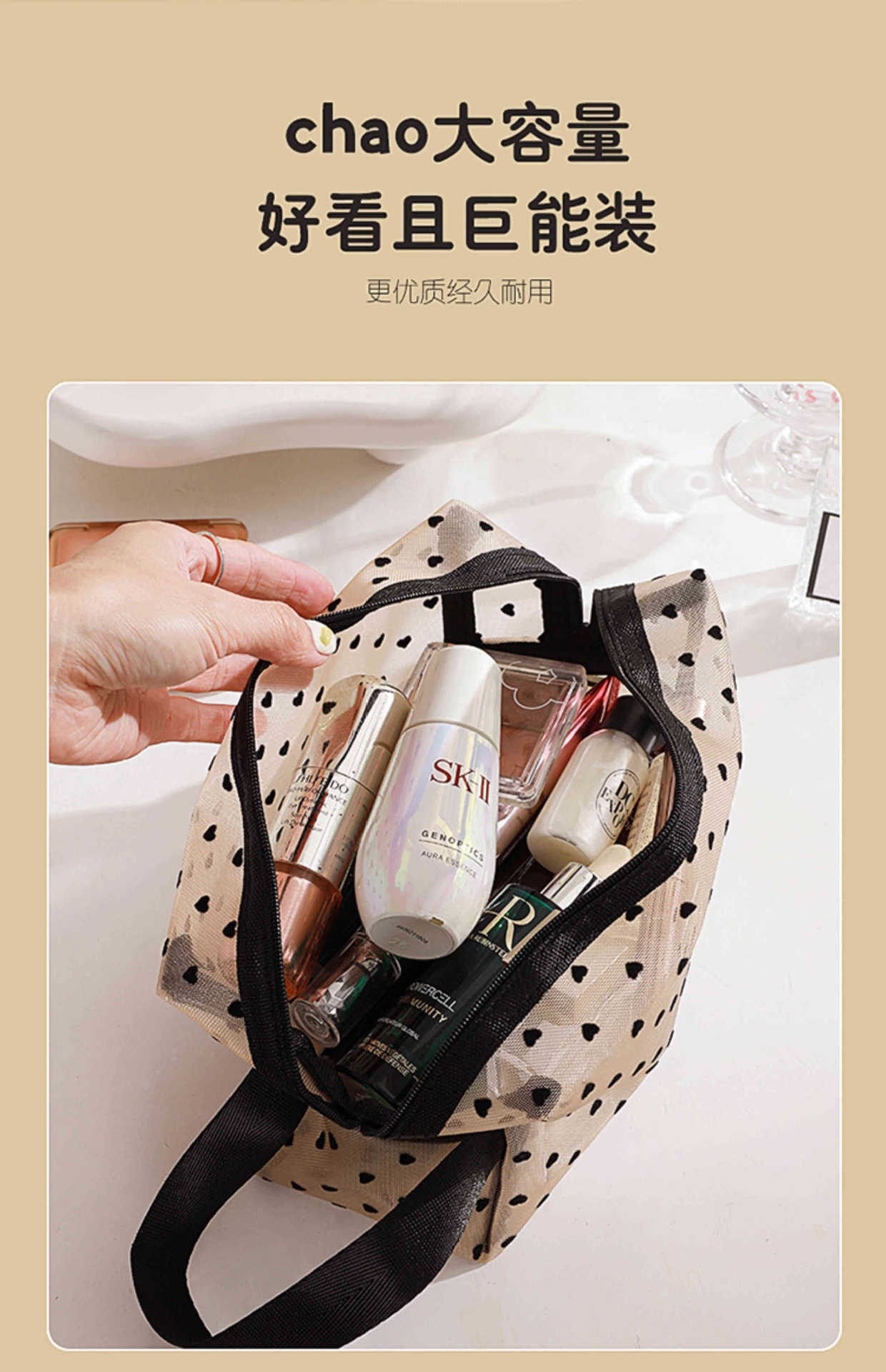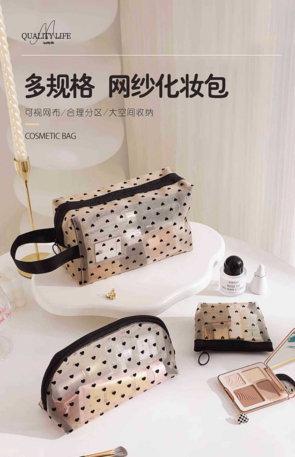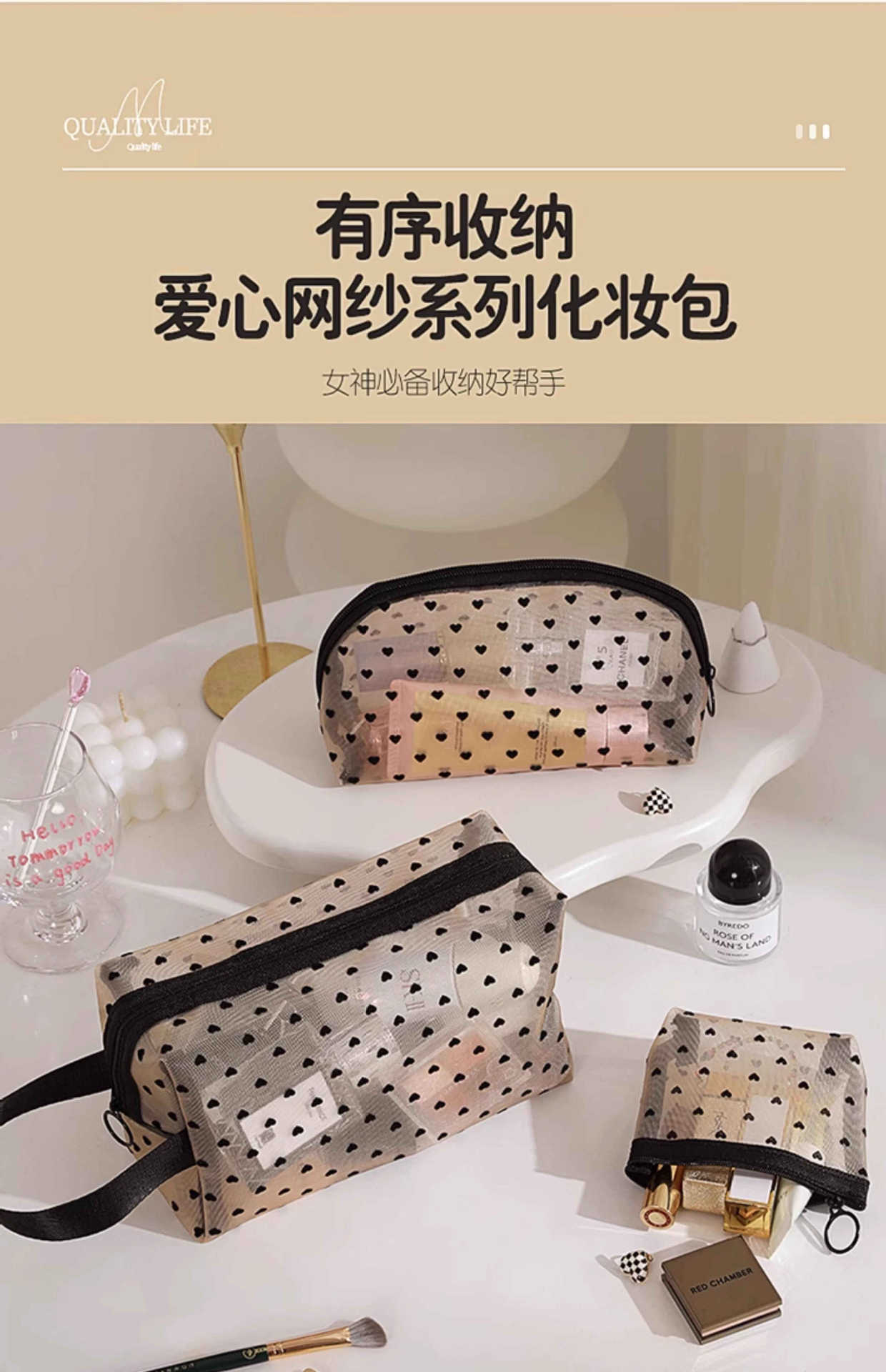 Ins 메쉬 화장품 가방 러브 휴대용 립스틱 메이크업 가방 대용량 여행용 수납 확대 세면 용품 가방스토어 가기